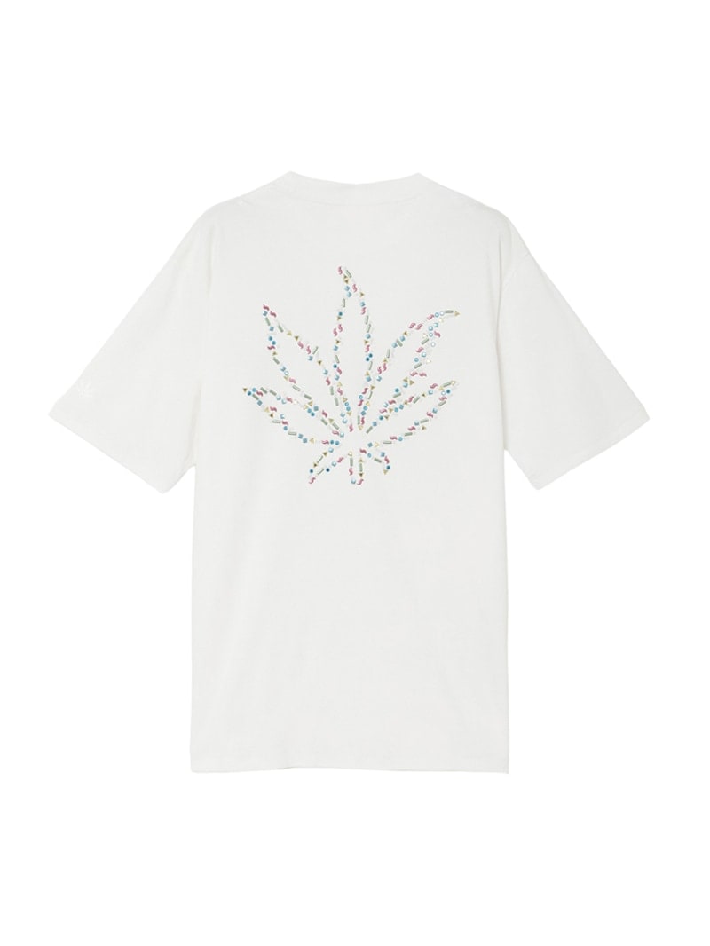 メンズ 半袖Tシャツ ガーメントダイ クリスタル アウトライン リーフ