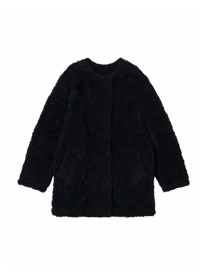 ウィメンズ アルパカ ウールボア ノーカラーハーフコート スカル