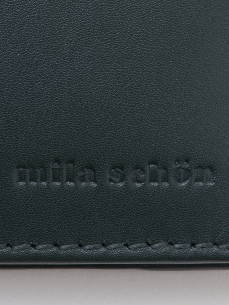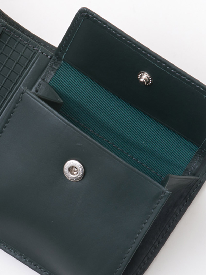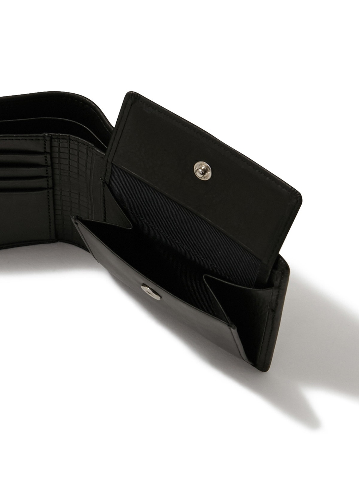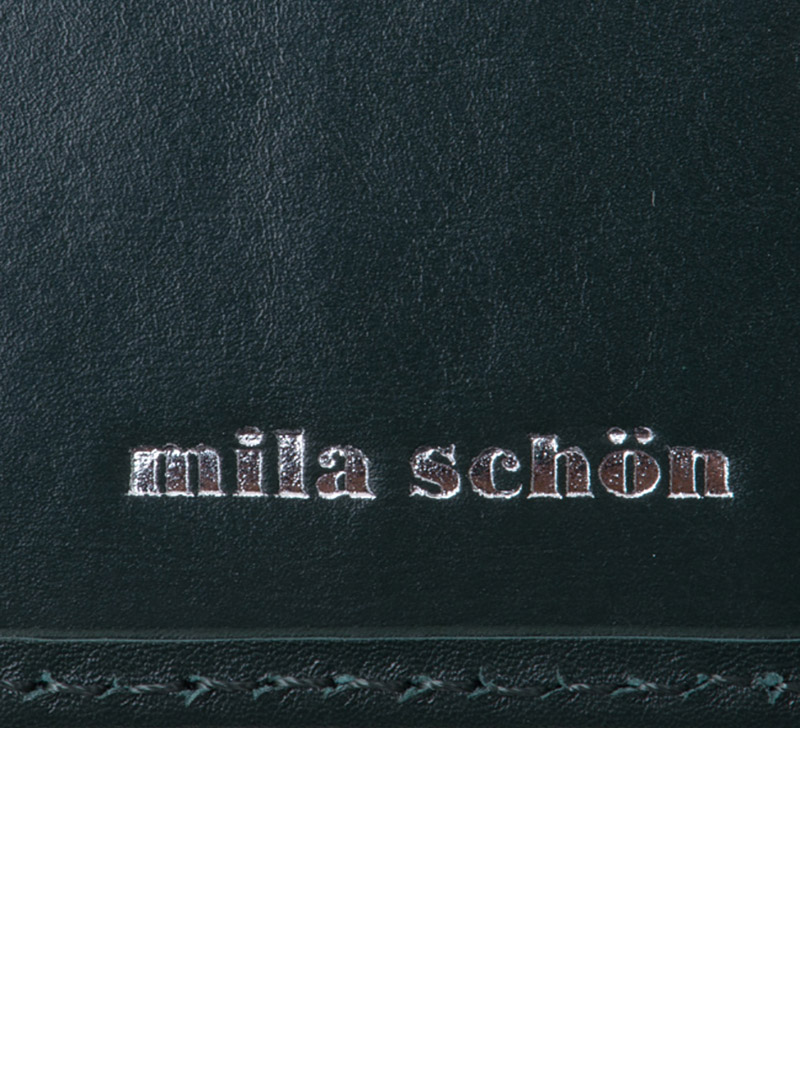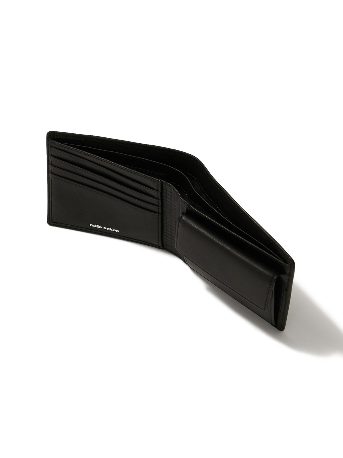 厳選された良質なカーフレザーを使用した、二つ折りの小銭入れ付き札入れです。カーフレザー特有の滑らかな肌触りの仕上がりに、内装の一部にオリジナルのチェックのエンボス加工を施したレザーを合わせた、ミラ・ショーンらしいエレガントなアイテム。シンプルで飽きのこないデザインとなっています。