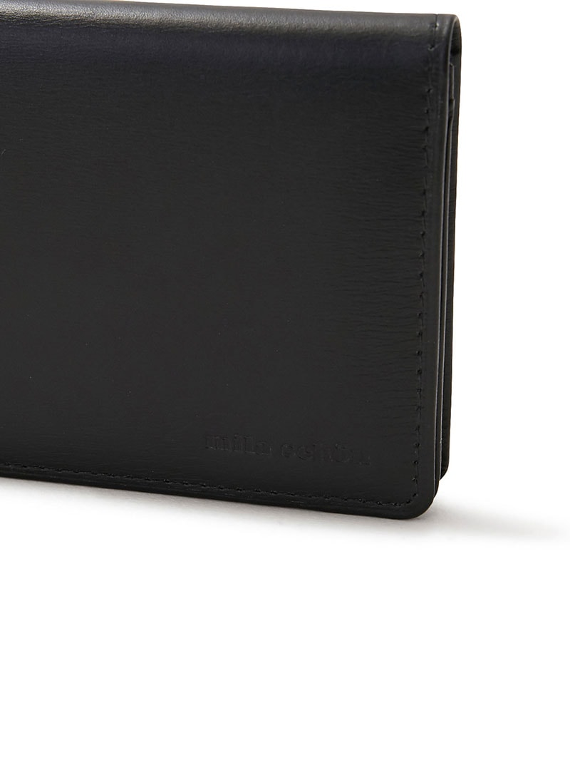 最高の品質を誇るボックスカーフ原皮はヨーロッパの限られた地域の厳選された素材のみを使用し、丁寧に手揉み加工が施されたレザーを使用しています。日本の職人の手により丁寧に仕上げられた高級感溢れるアイテム。通しマチと云われる仕様で名刺の出し入れもスムーズで多くの名刺を収納することが出来ます。