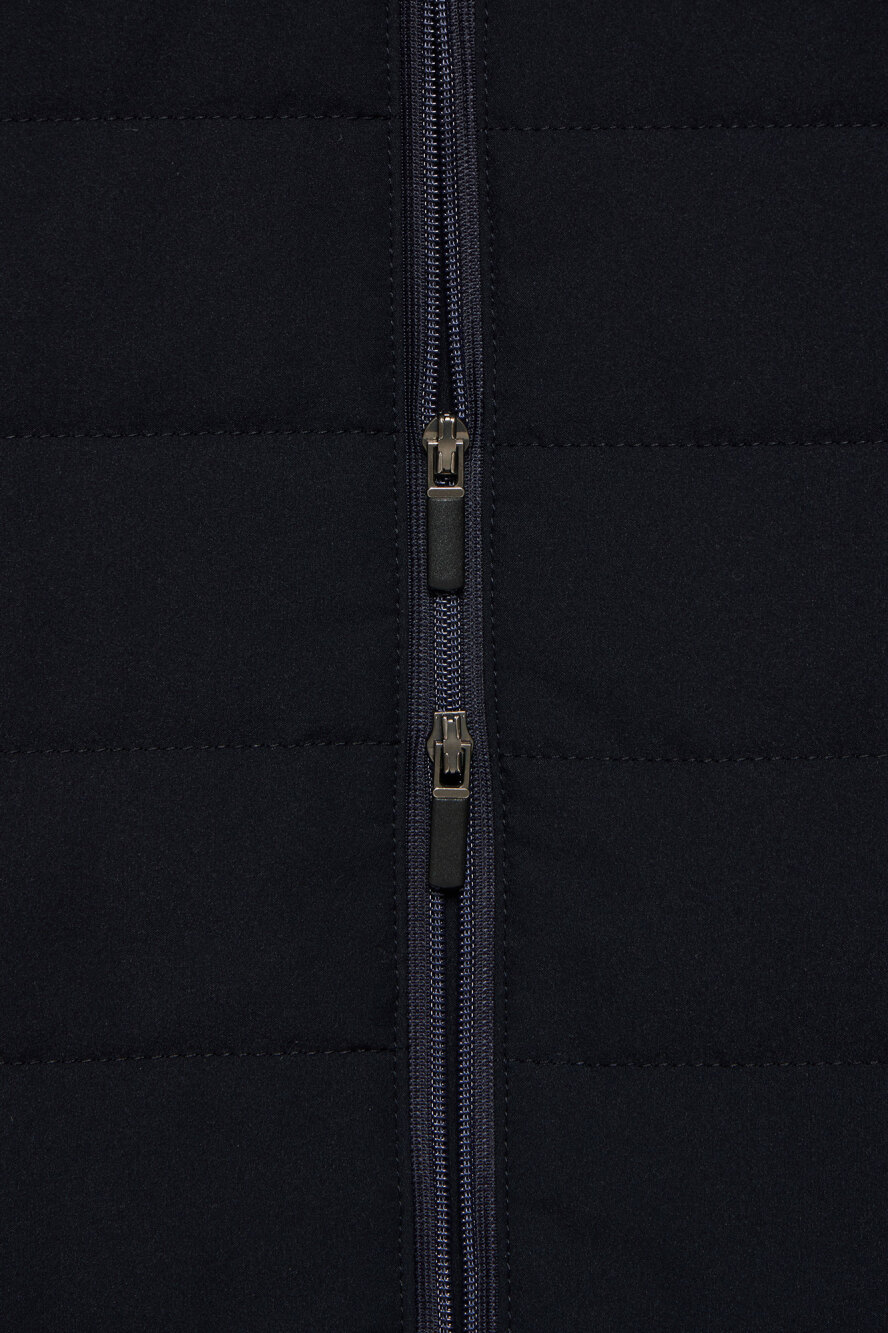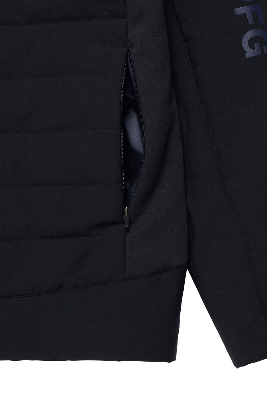素材:<表地>複合繊維(ポリエステル)100% <別布>ポリエステル90% ポリウレタン10% <裏地>ポリエステル100% <中綿>ポリエステル100% <ポケット袋部分>ポリエステル100%