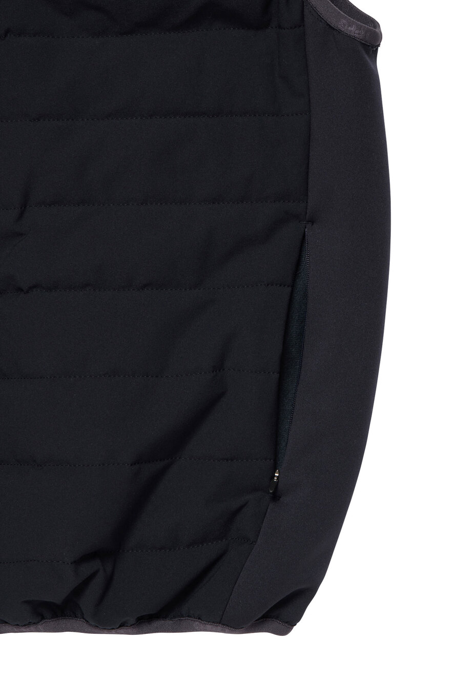 素材:<表地>複合繊維(ポリエステル)100% <別布>ポリエステル90% ポリウレタン10% <バインダーテープ>ポリエステル100% <裏地>ポリエステル100% <中綿>ポリエステル100% <ポケット袋部分>ポリエステル100%