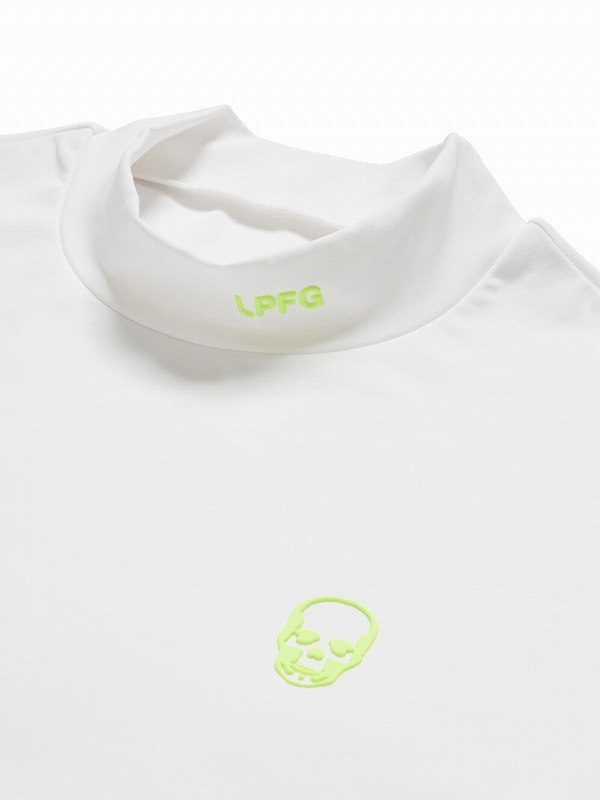左胸に蛍光色のワンポイント・スカルを配置。