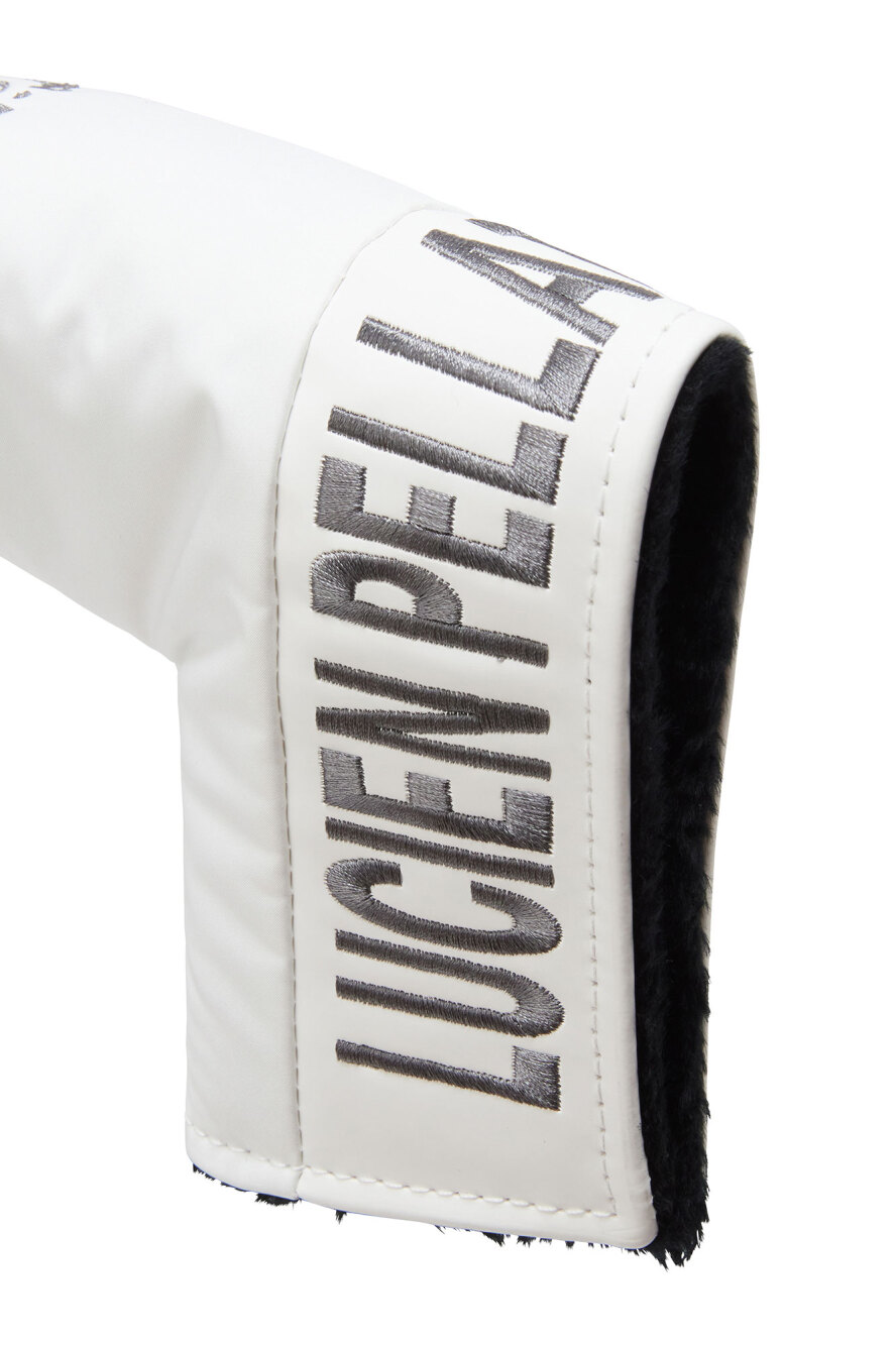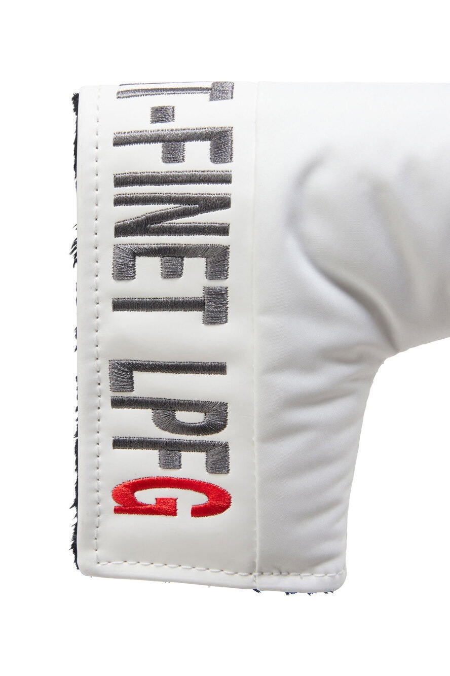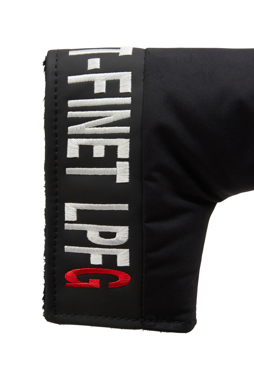 LPFGのパターカバー。サークルロゴxスカルの刺繍に加え、大きなブランドロゴが刺繍で表現されている。