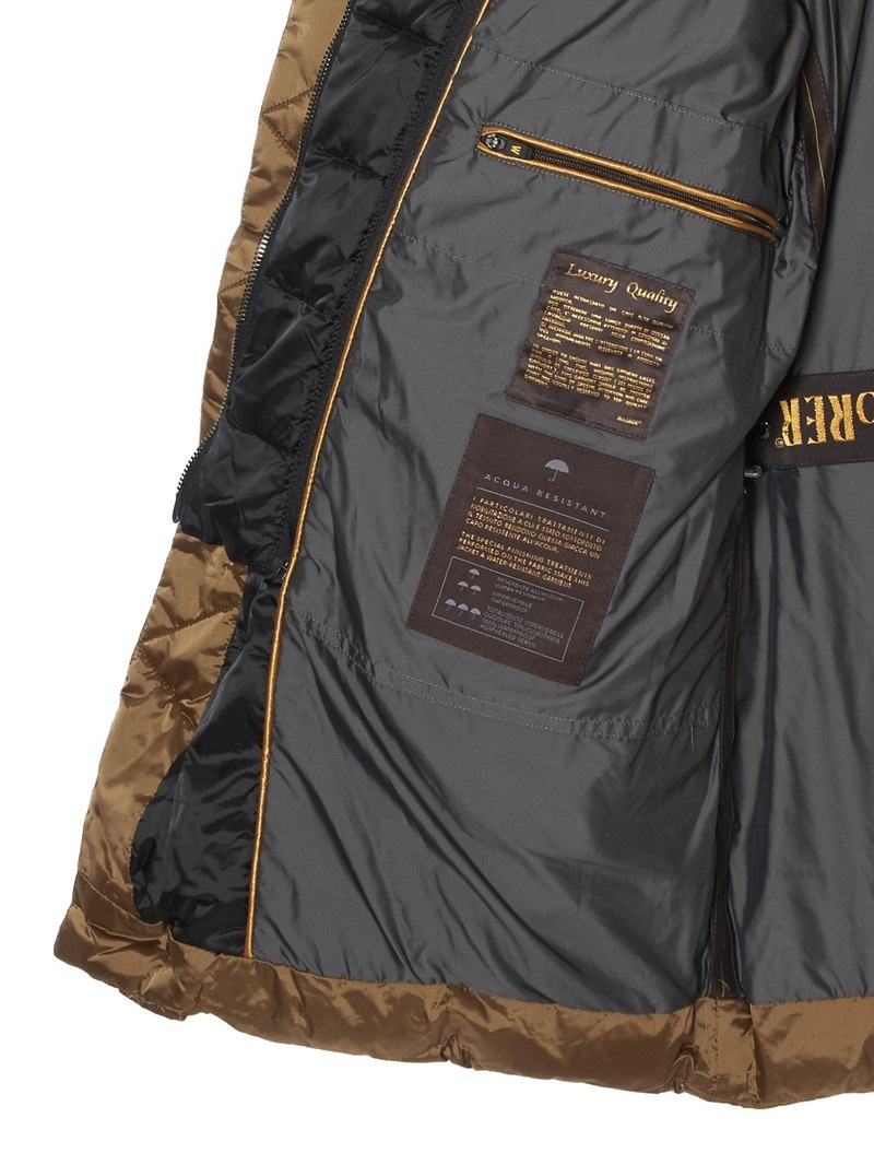 AqcuaシリーズのL.85パーカー。グースダウンの中綿を詰め、大きなブーダンキルティングを施しました。