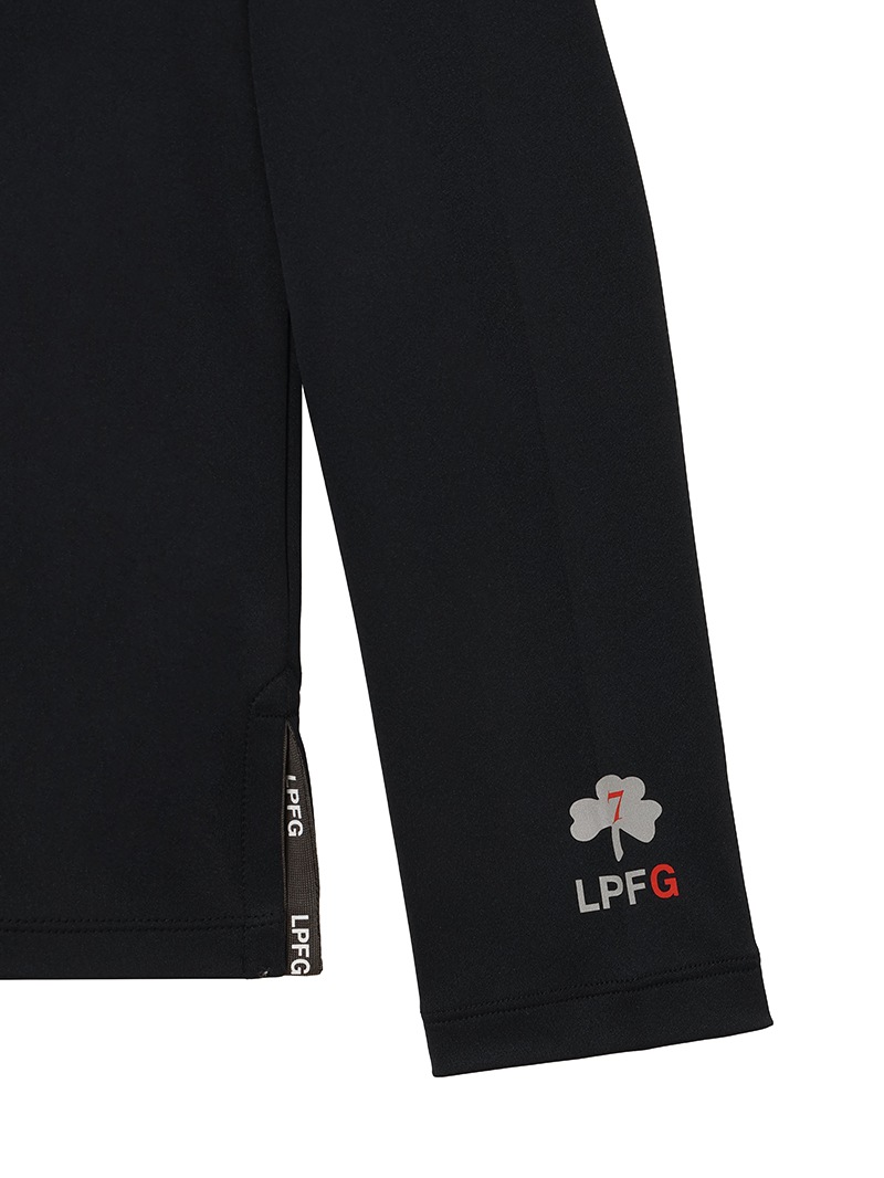 LPFGのメンズモックネックプルオーバー。フロントとネック部分にLPFGロゴ、左袖にクローバー”7”をデザイン。再生プラスチック繊維のリサイクル糸を使用したUVカット、蓄熱、透け防止の機能を備えた素材となっております。裏側に特殊な微起毛を施すことにより保温性、蓄熱性に優れ着心地がよく機能を備えています。