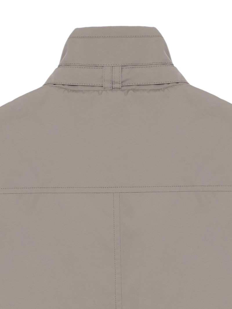 裏地付きトレンチコート。ダブルダイを施し、撥水性のあるシェイプメモリー(形状記憶)ファブリックで仕立て、裏地には軽量素材を使用しています。