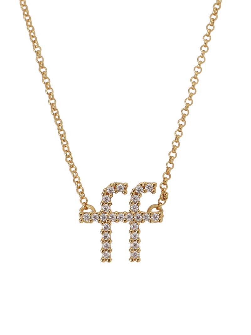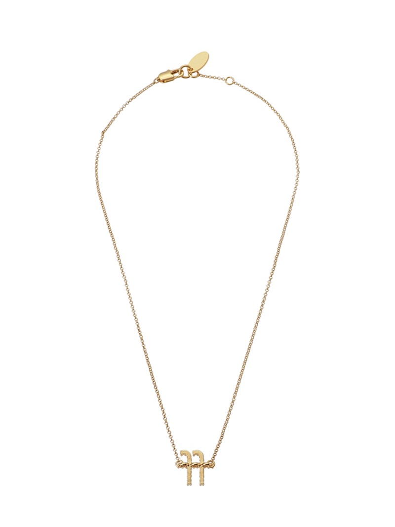 ミニマルで美しい、アイコニックなforte_forteロゴのペンダントネックレス。18Kゴールドメッキ。