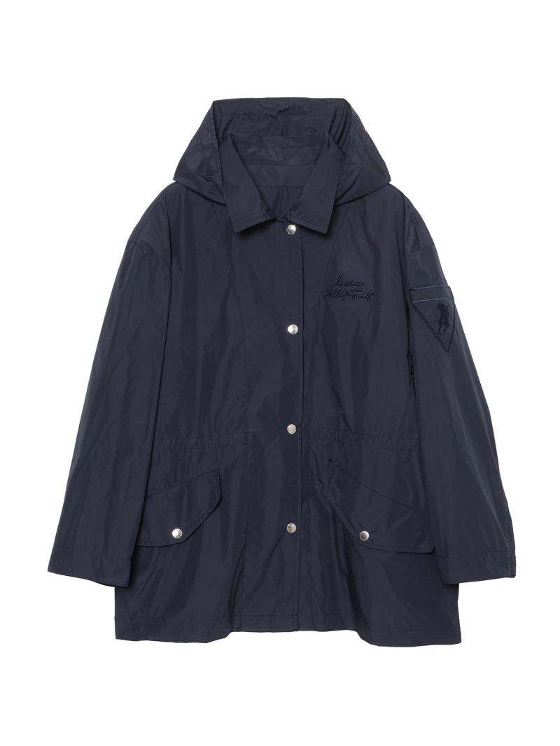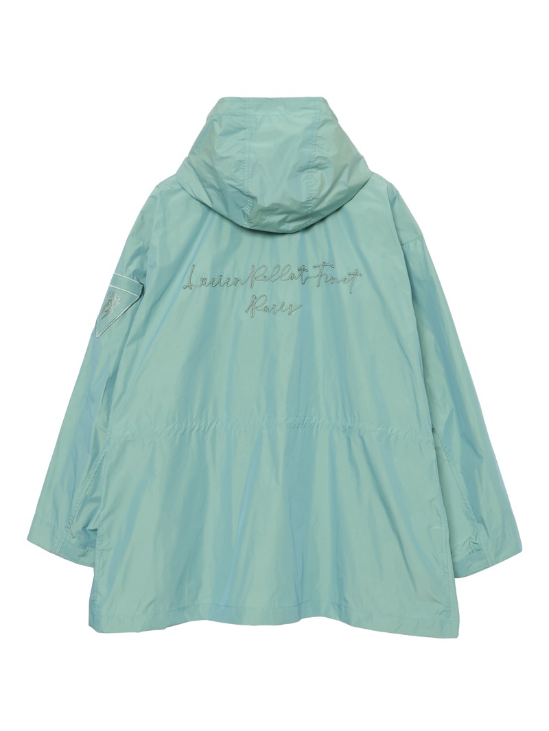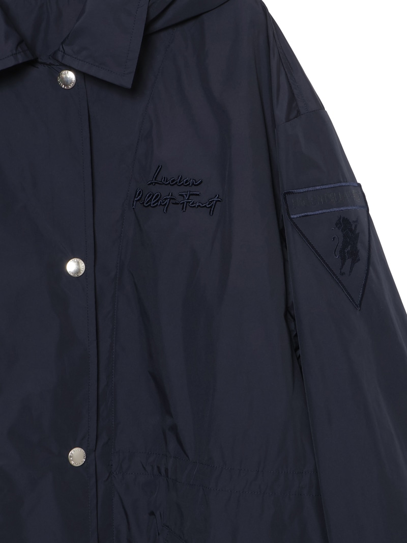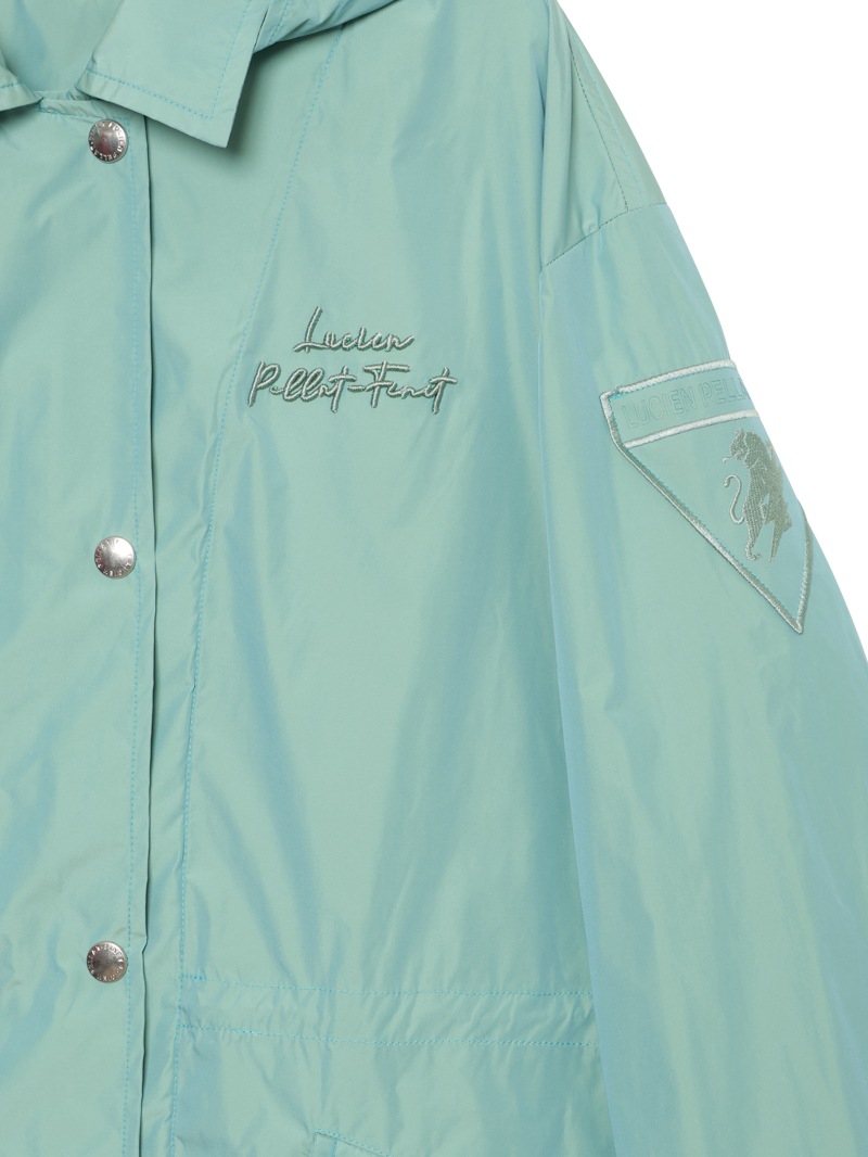 高密度で織り上げたメモリータフタのデタッチャブルフードジャケット。左胸にlucien pellat-finetロゴ、左袖にライオン、背中にlucien pellat-finetロゴを配置。軽量でありながら、ハリ感があり、シルエットが出やすい素材感。