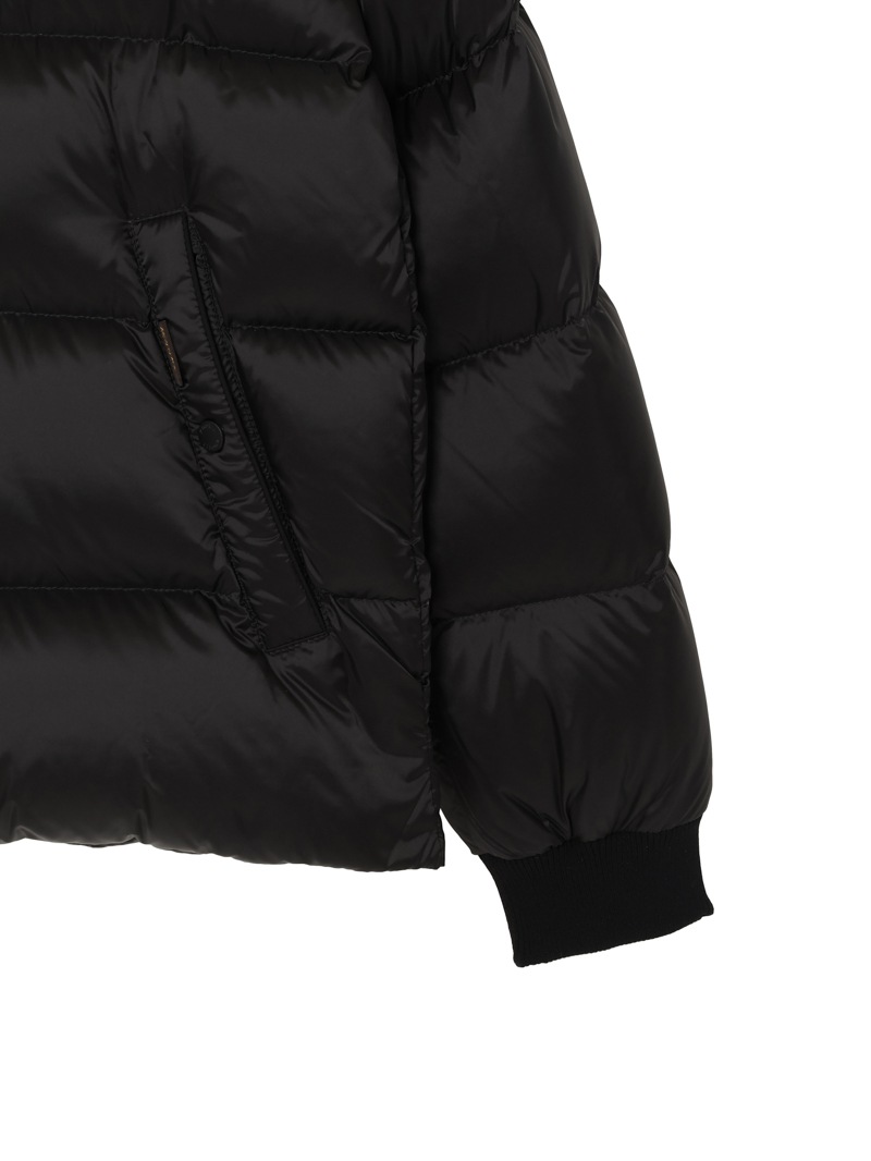 撥水効果を備えたAcquaライン(耐水レベル1)よりお届けする、ハイブリッドスタイルのボンバージャケット。撥水コーティングを施したテクニカルファブリック製で、肩のヨークには異素材パーツがあしらわれています。グースダウンを充填し、キルティングとニットカフスで仕上げました。