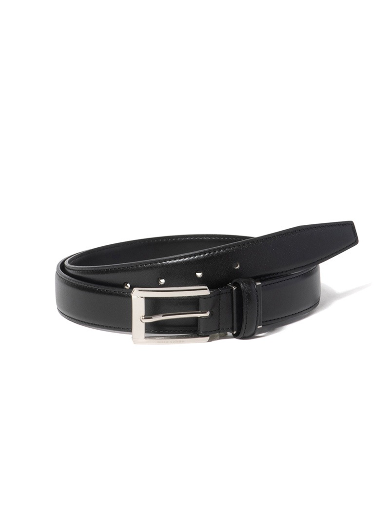 上質で光沢感のあるスムースレザーを使用したベルトです。バックルのサイドにはブランドロゴがレーザー彫刻され、シャープで洗練されたデザインが魅力です。バックルには中間フリー金具を採用しているため簡単に長さ調整ができます。ビジネスシーンに最適で、スーツやドレスパンツと相性抜群。スマートかつエレガントに演出し、大人の雰囲気を引き立てます。贈り物としても最適な一品です。