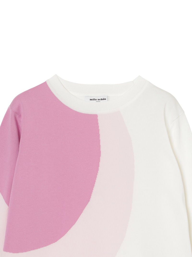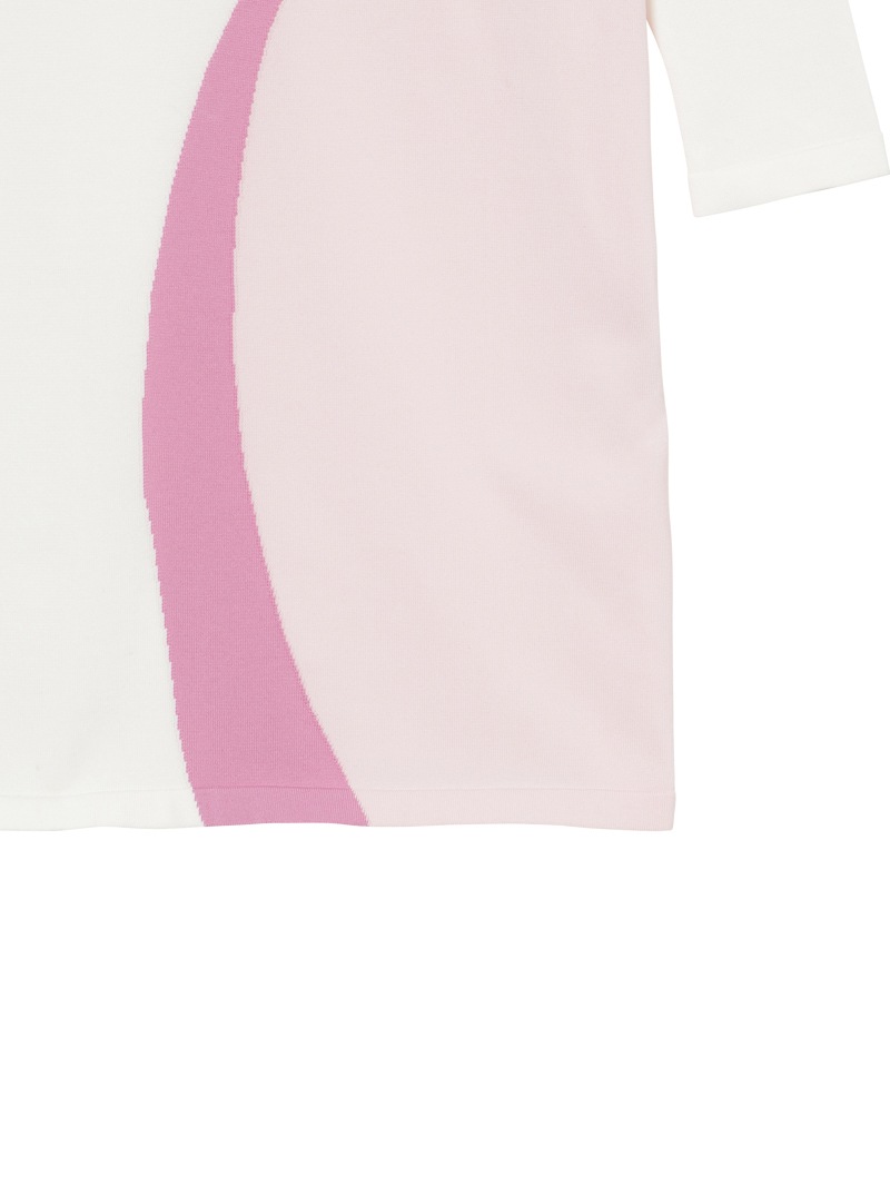 ミラ・ショーンアーカイブに登場する波柄からインスピレーションを受けたマルチカラーインターシャのニットドレス。インターシャに最適な強ストレッチの綿混素材を使用しています。さらっとした着心地と軽さが特徴です。