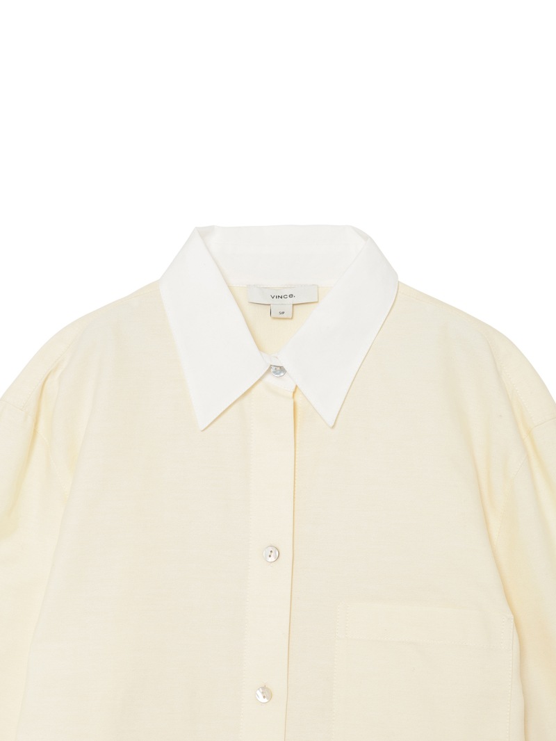コントラストカラーが特徴のクラシックなコットンオックスフォードシャツは、シグネチャーのアゴヤシェルボタンで仕上げられています。