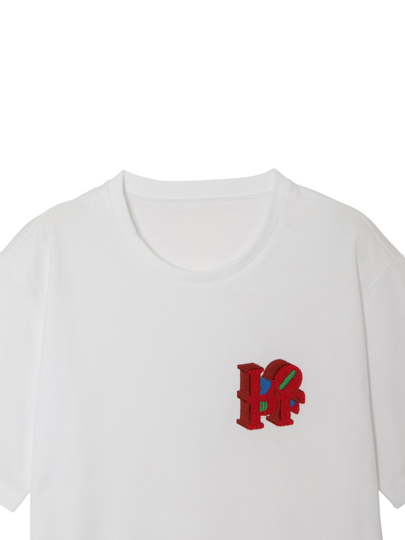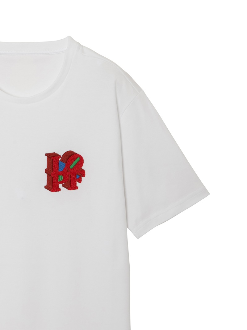 ”LOVE”から”HOPE”へと続くメッセージ。ルシアン ぺラフィネのフィロソフィーを想起させるデザイン。刺繍のミックスの技法にて表現。最高級エジプト綿を使用。