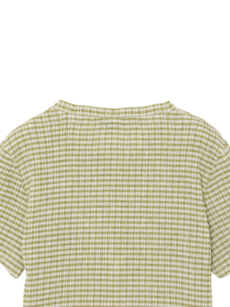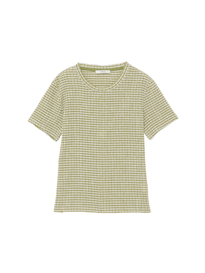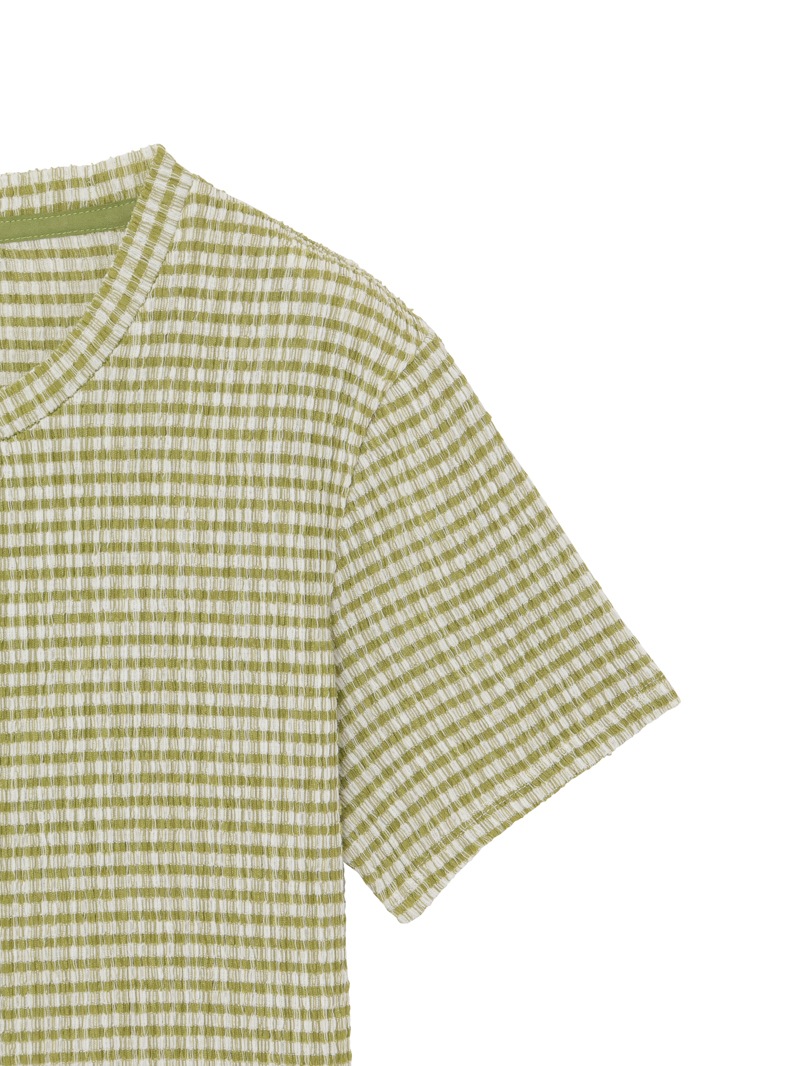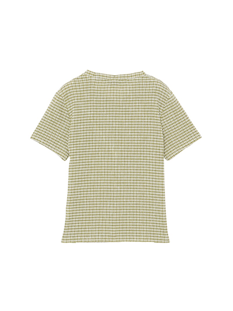 ガーリーなチェックTシャツ。デニムスタイルに相性抜群のカジュアルなグリーンカラー。さらっとした着心地です。