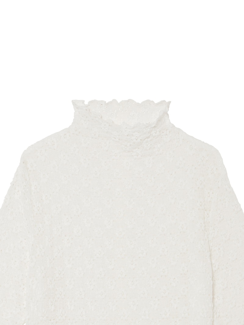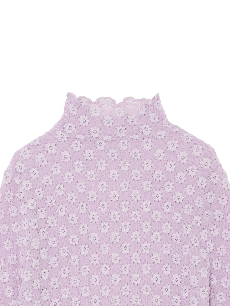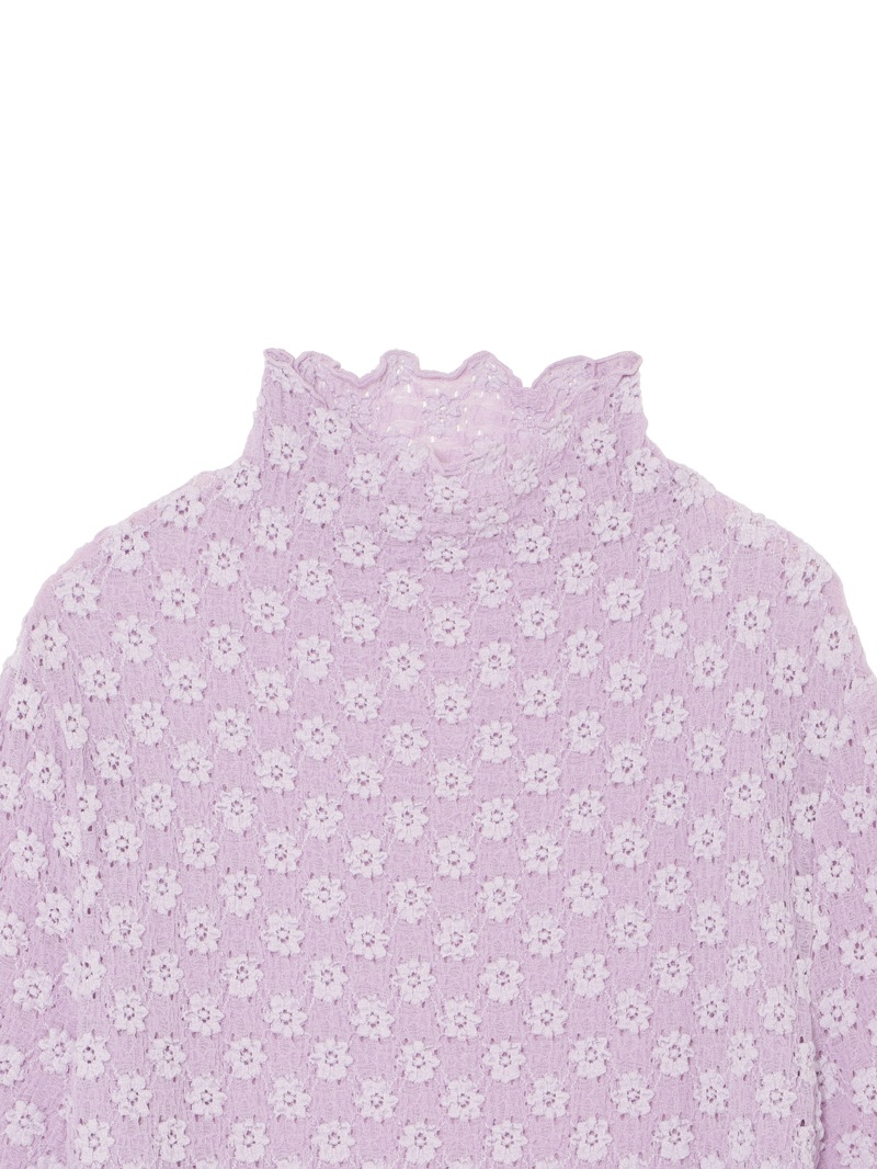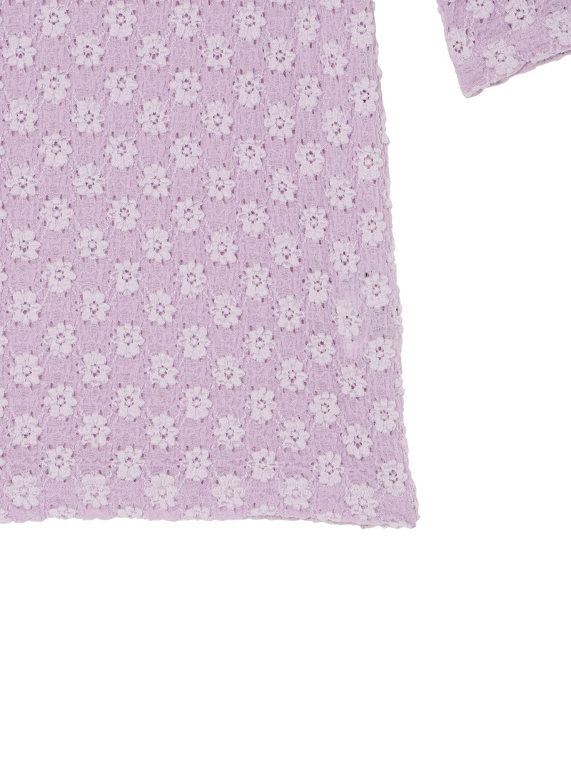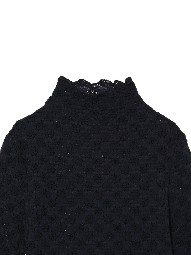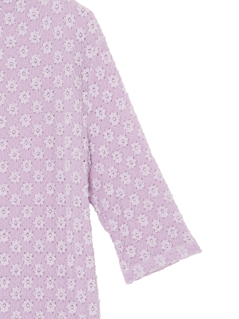 ハイストレッチのシャーリングレースを使用したカットソーです。綿混のソフトなタッチが肌心地の良い一枚。五分袖でジャケットやカーディガンのインナーとしても活躍します。