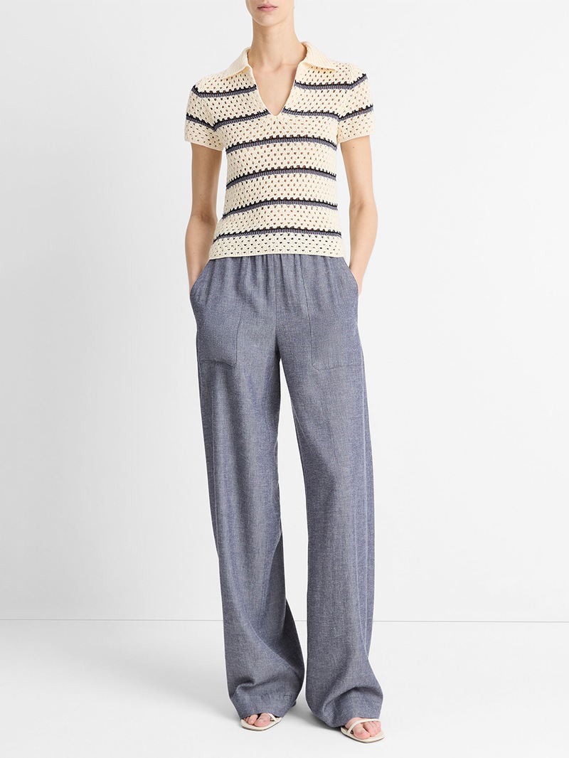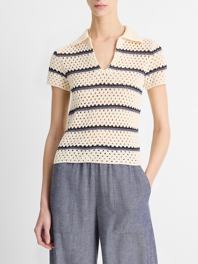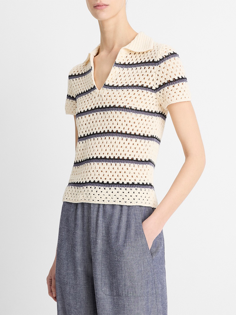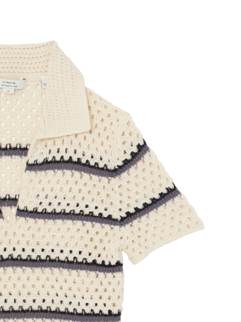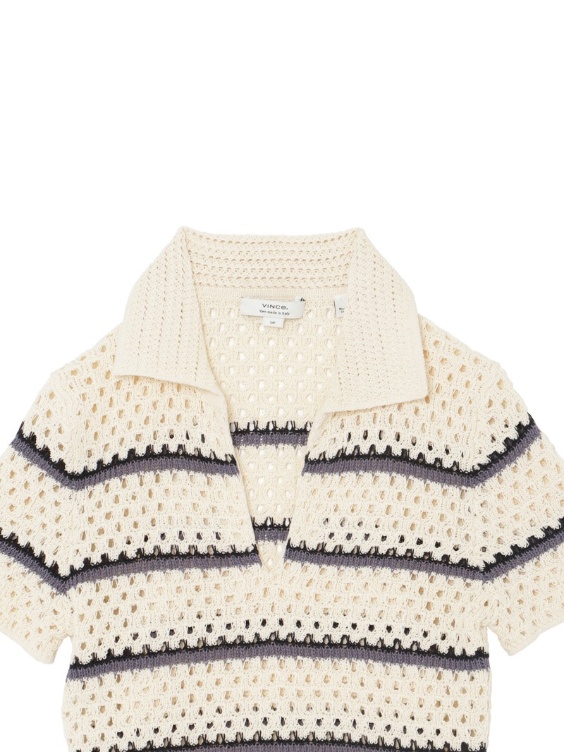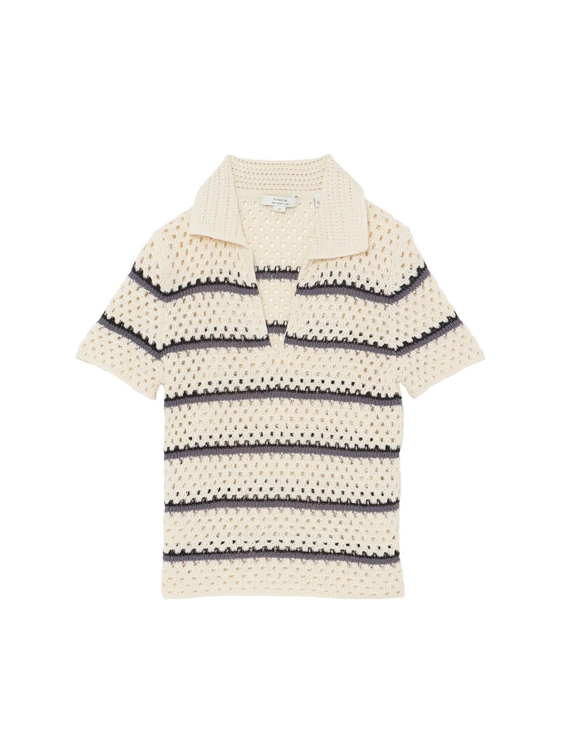 人気のクロシェットポロニットにVinceらしいボーダーデザイン。大人ガーリーな印象。レイヤードも楽しめます。