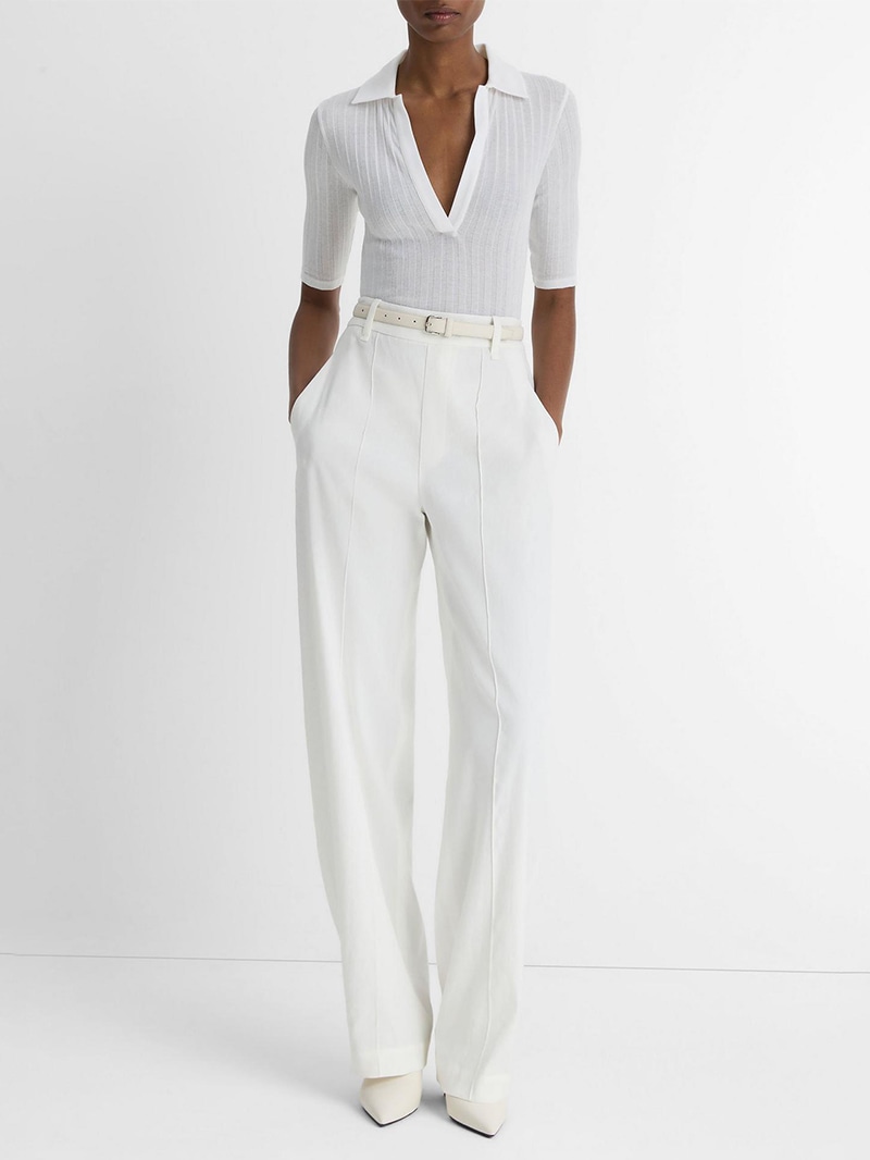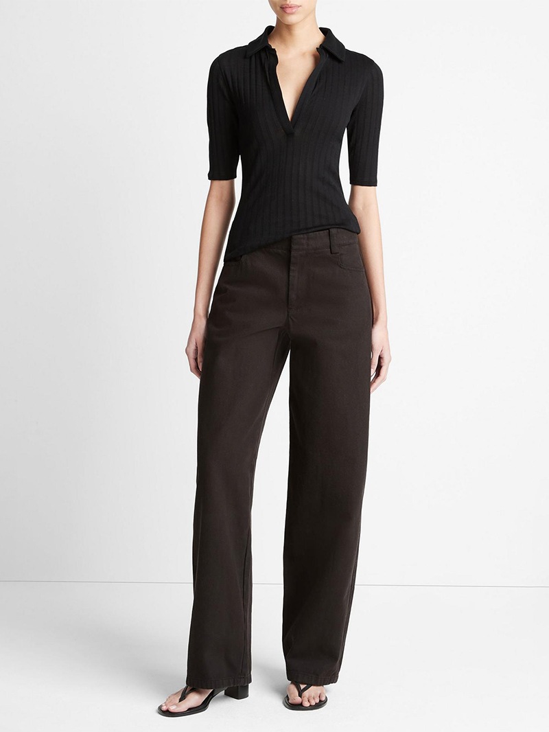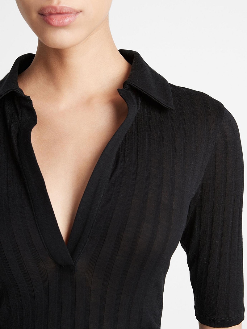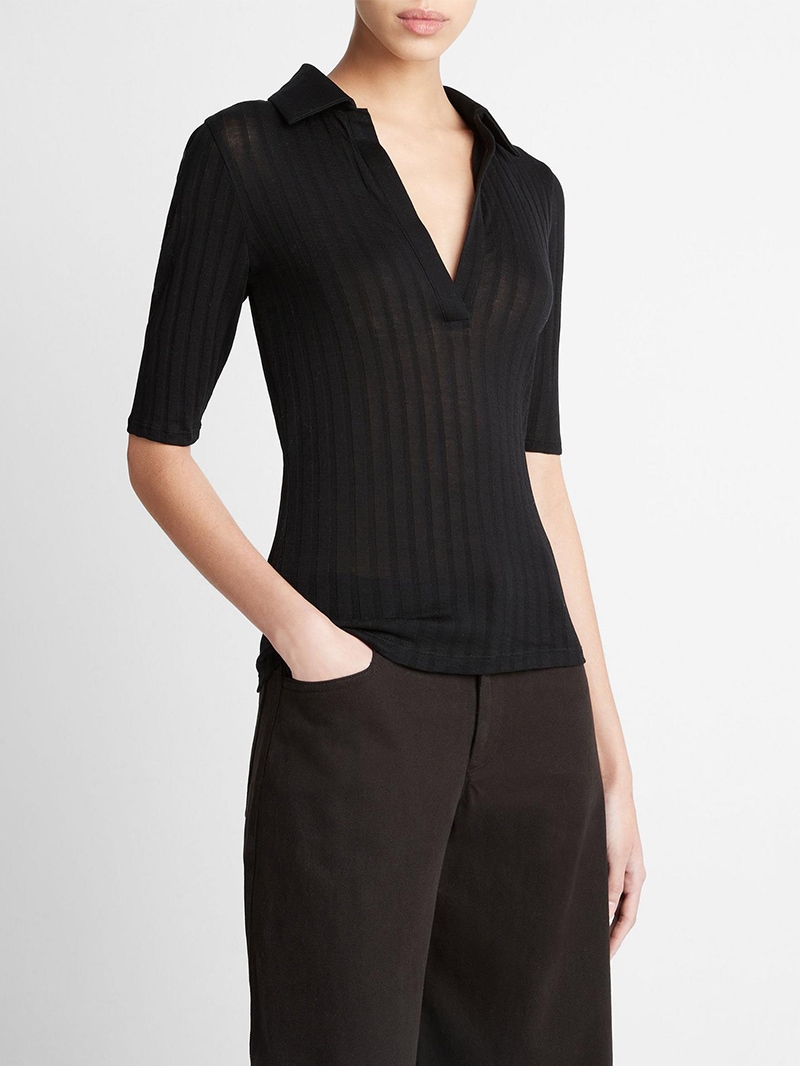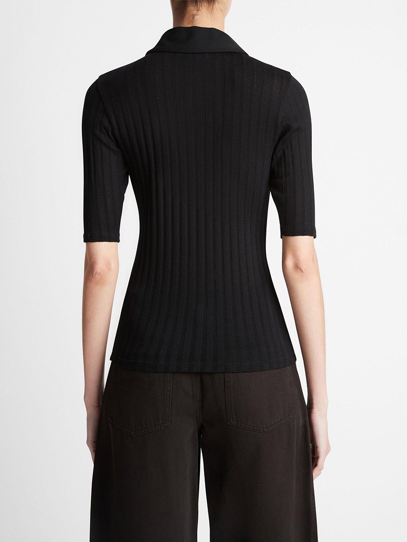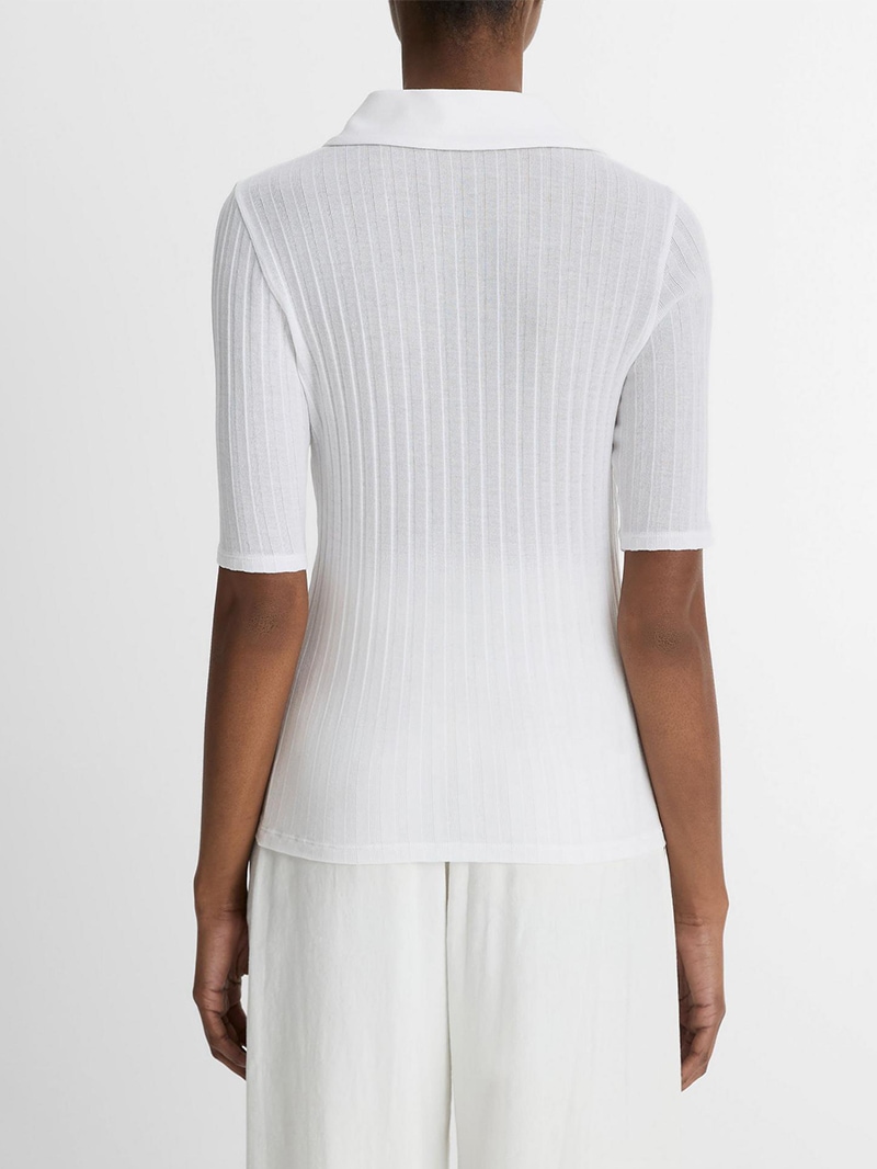 ソフトなリブ編みのコットンポロシャツ。肌にぴったりとフィットするようにカットされ、スポーティなシルエットをフェミニンに演出。