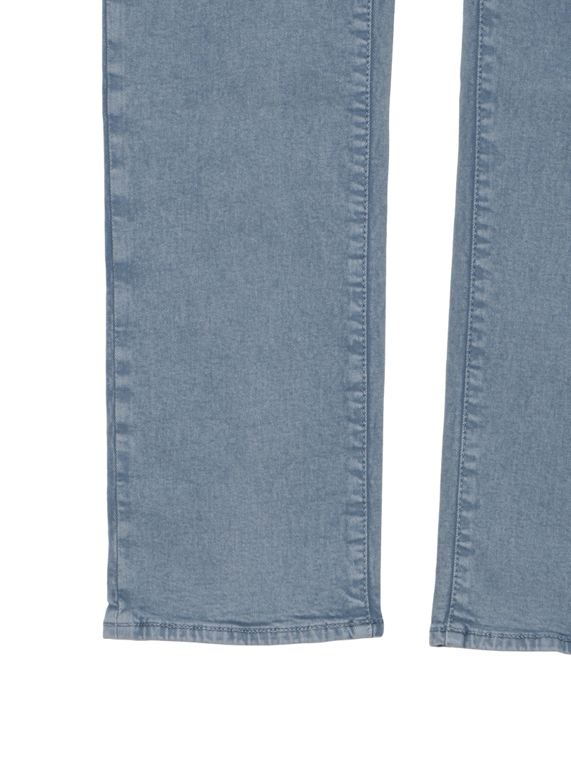 ストレッチの効いたホワイトデニムをベースに、部分的に使用したシルバーグレーのステッチ使いも上品。見た目、履き心地も軽快な価値のある一本。