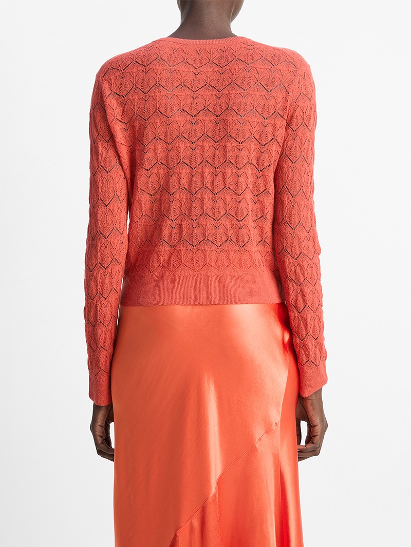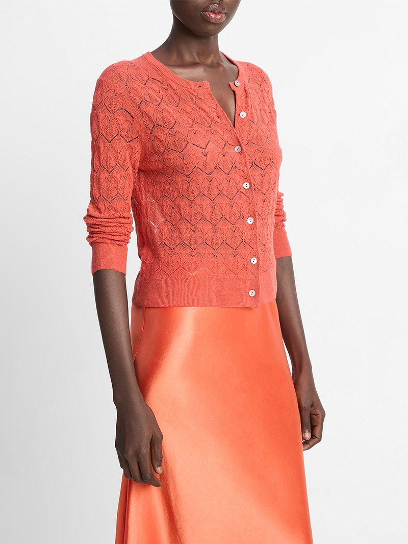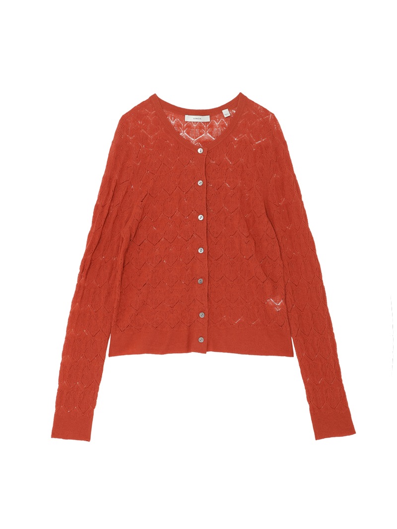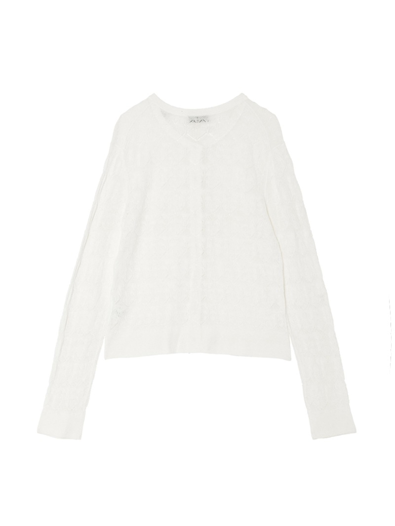 透け感のあるレースステッチのコットンカーディガン。軽やかな着心地で、シンプルなスタイリングに抜け感をプラスしてくれます。デイリーにもフォーマルシーンにも活躍する一枚です。