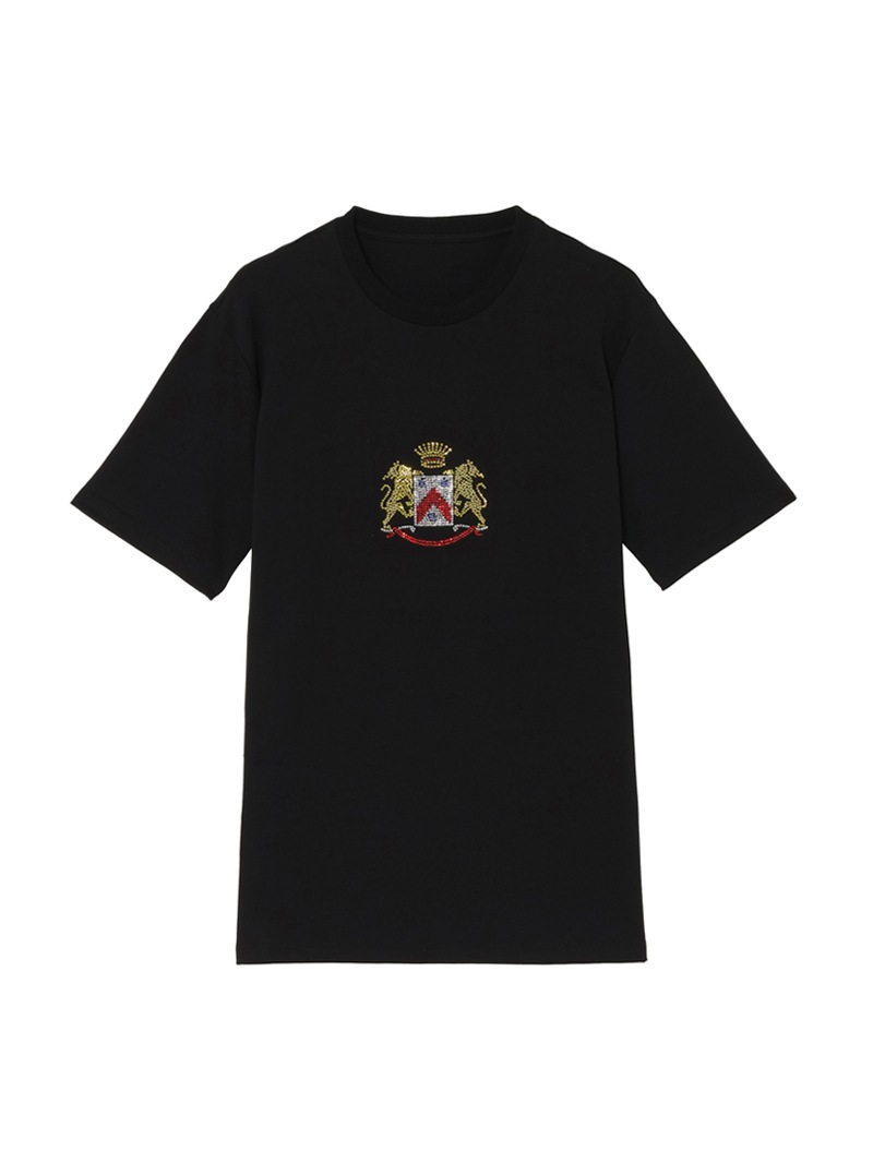 フロントにlucien pellat-finet家の家紋(クレスト)をクリスタルで配置。最高級エジプト綿を使用。