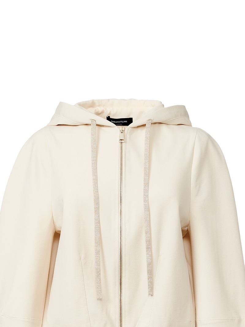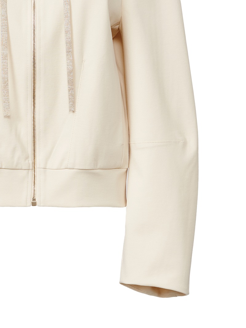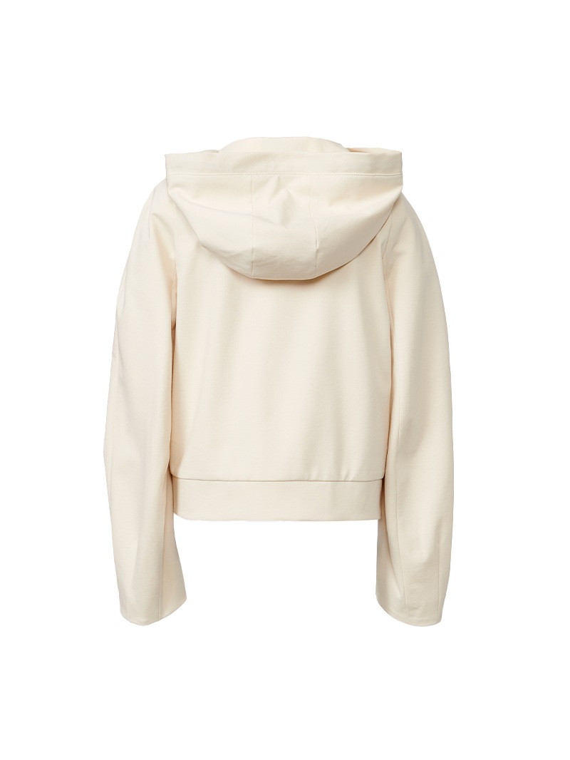 上質なミラノリブジャージで仕立てた、ボンバーシルエットのフーディージャケット。しなやかで程よくハリのある素材感が、カジュアルなシルエットに洗練された印象を与えます。都会的な抜け感とリラックスした着心地を兼ね備えた、季節の変わり目に活躍する一着です。裏地付き。