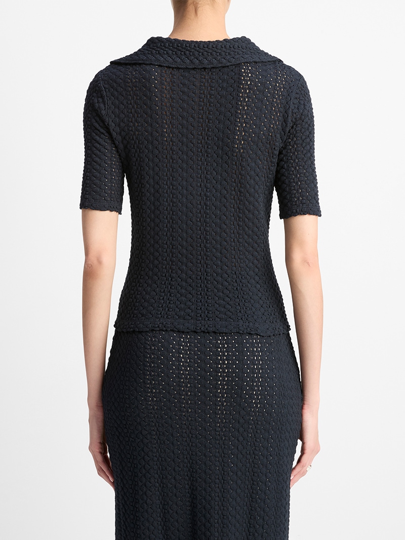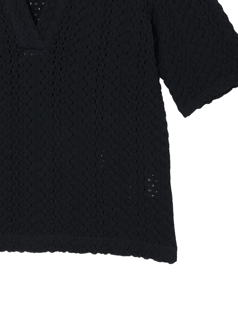 コットン100%のしなやかな素材で仕立てたハーフスリーブポロシャツ。すっきりとしたシルエットに透け感のある編地が上品な大人カジュアルスタイルに。デニムやスラックスなど、合わせるアイテムで雰囲気の変わる万能な一枚です。