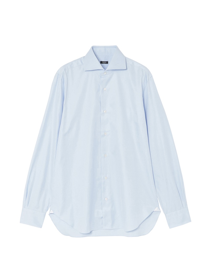 ブランドの顔とも言えるドレスシャツは、ナポリスタイルを体現するハンドステッチ箇所を多用したこだわりの作りや、ロールが美しい襟が最大の特徴。背ダーツの入ったスリムフィットで、襟型NEW BRUNOのセミワイドカラー、幅広いシーンでお使いいただきやすい光沢感のあるツイル素材で仕立てた一着。