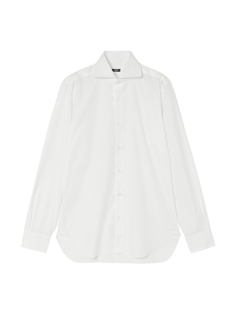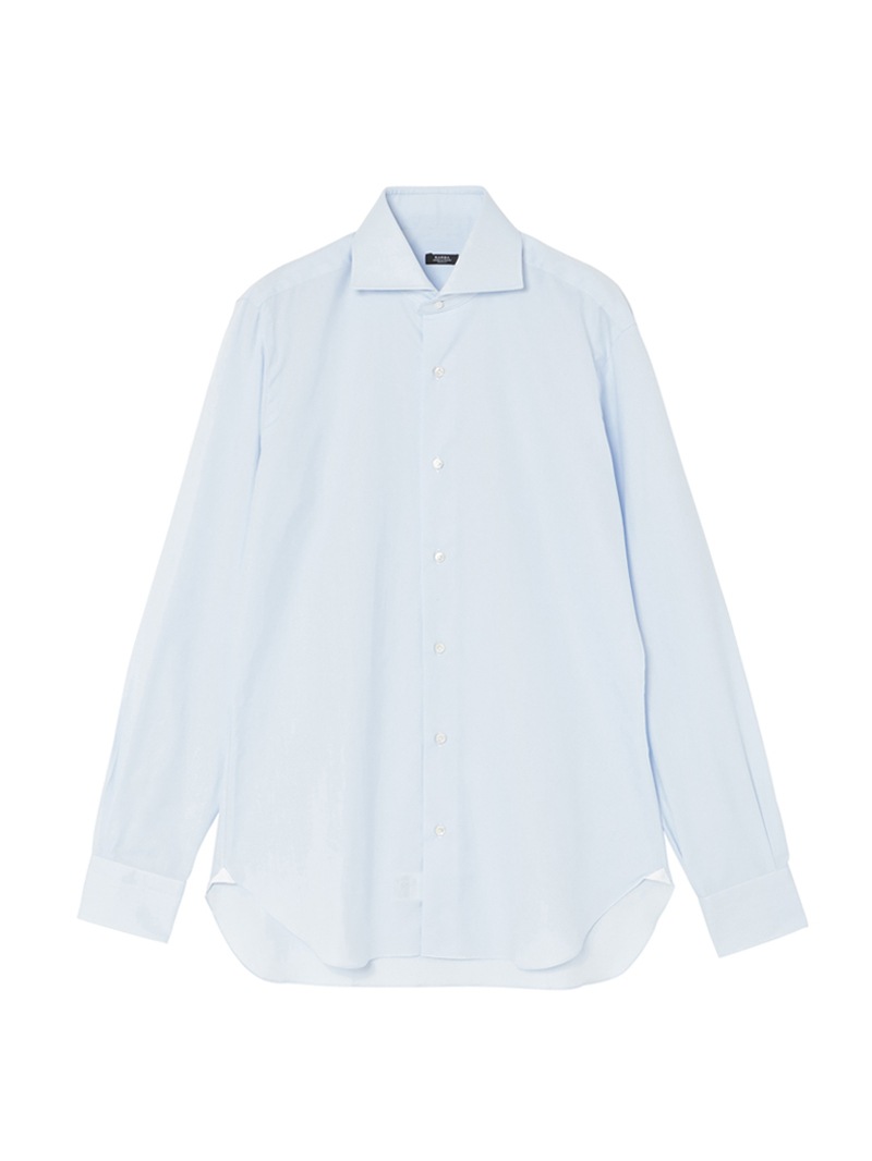 ブランドの顔とも言えるドレスシャツは、ナポリスタイルを体現するハンドステッチ箇所を多用したこだわりの作りや、ロールが美しい襟が最大の特徴。背ダーツの入ったスリムフィットで、襟型NEW BRUNOのセミワイドカラー、使い勝手のいいロイヤルオックスフォード生地で仕立てた一着。