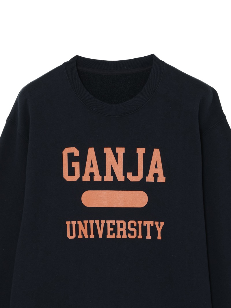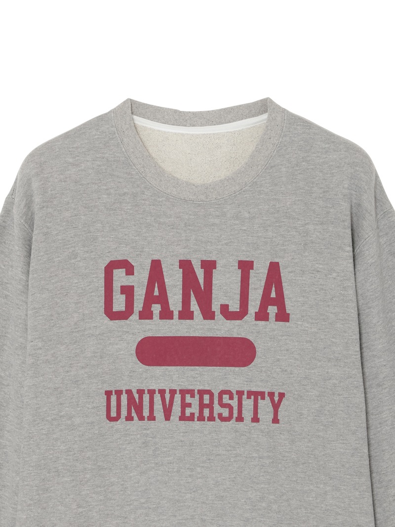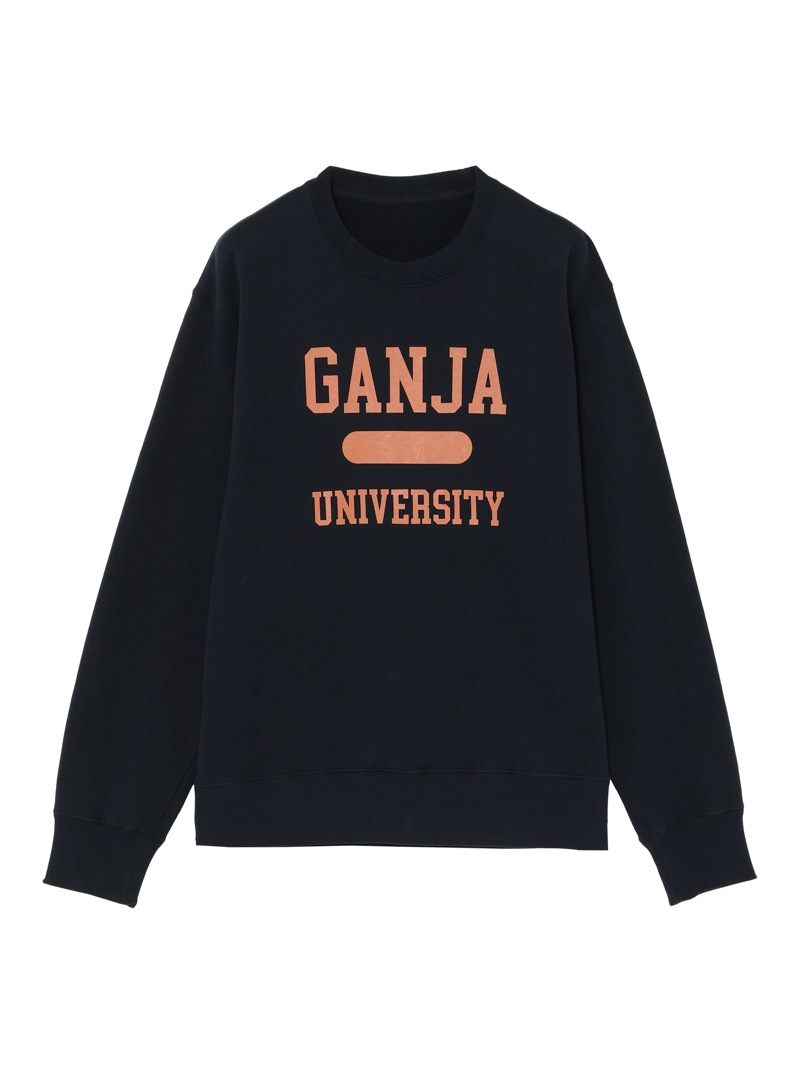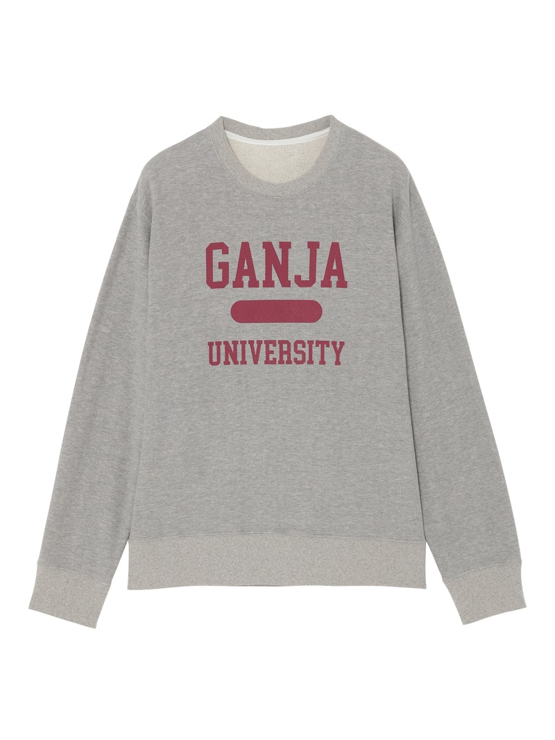 定番的なシルエットのスウェットシャツは、遊び心のあるデザインで。”GANJA UNIVERSITY”のグラフィックを採用。