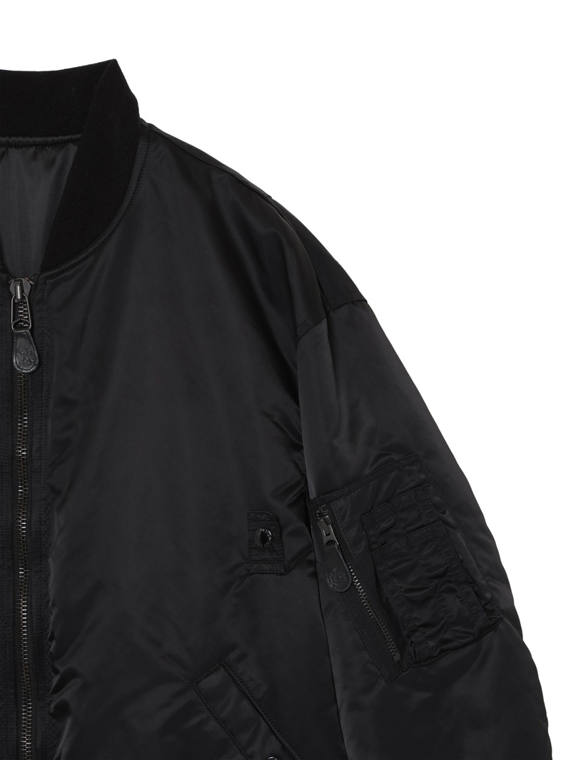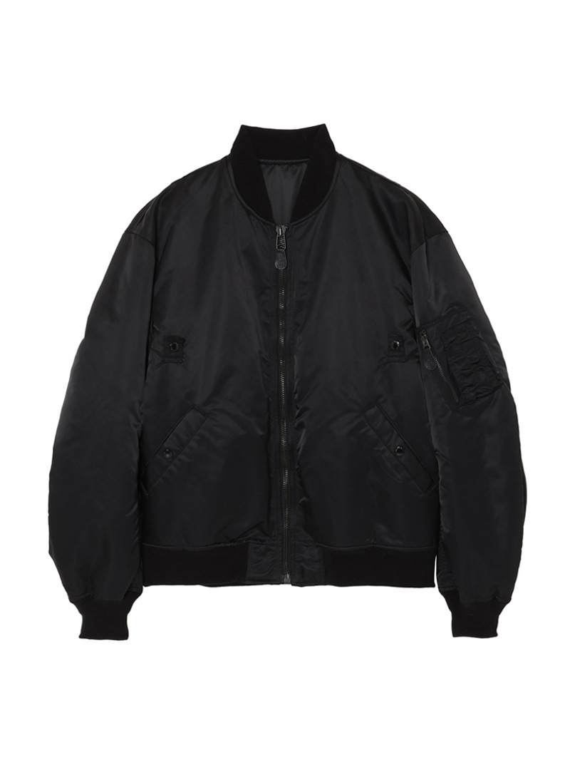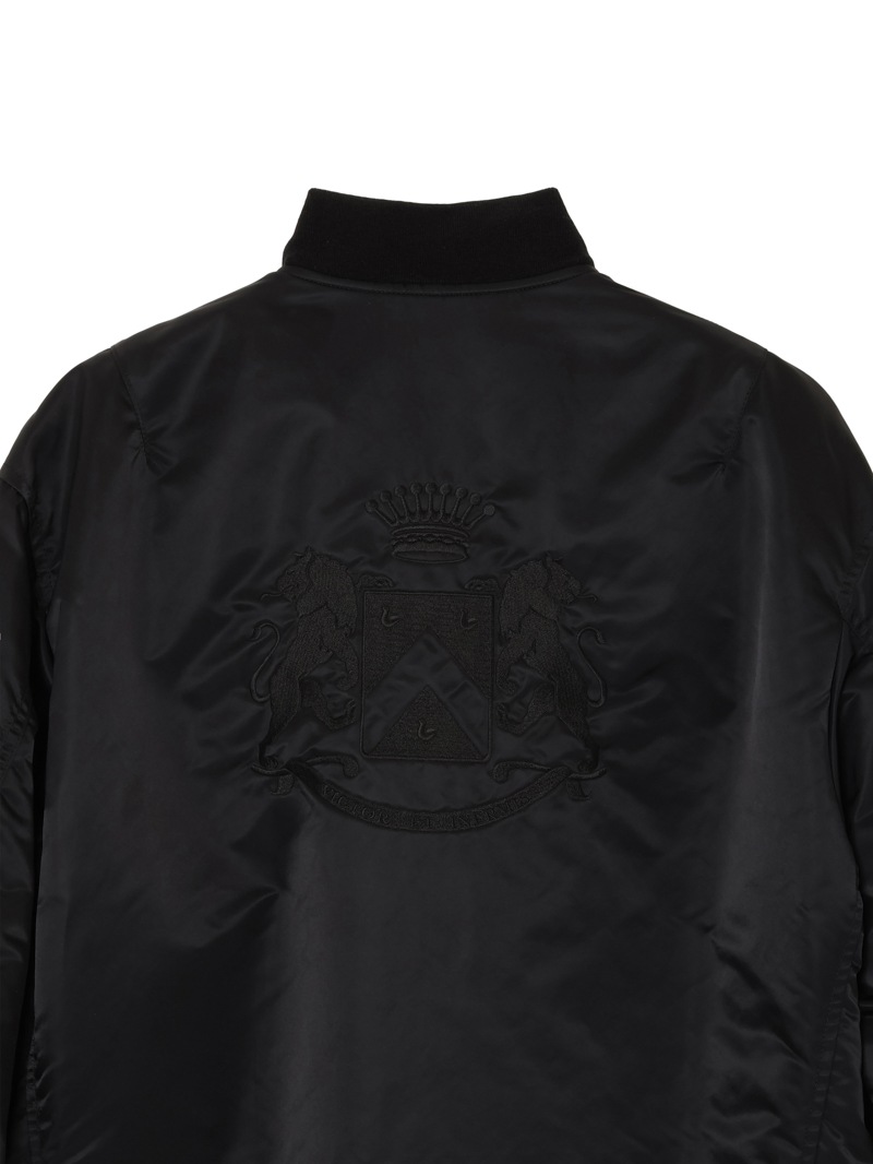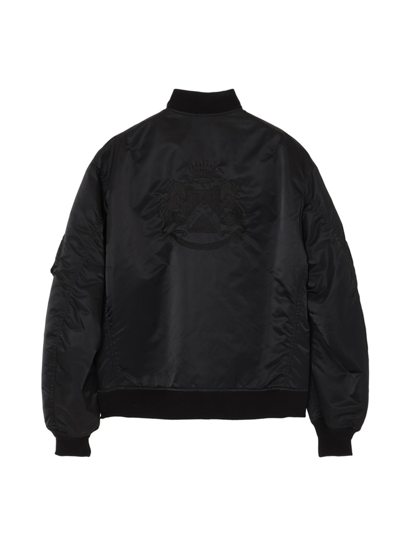 50年代前半にUS MILITARYで採用されたMA-1Wをベースにしたブルゾン。高機能中綿の”シンサレート”を使用し、表地には撥水加工を施したナイロンを使用した高性能なアイテム。ヴィンテージアイテムをベースとしながらも、シルエットは現代風にモディファイし、かつ背中にはアイコニックなモチーフを刺繍で配置したアイテム。