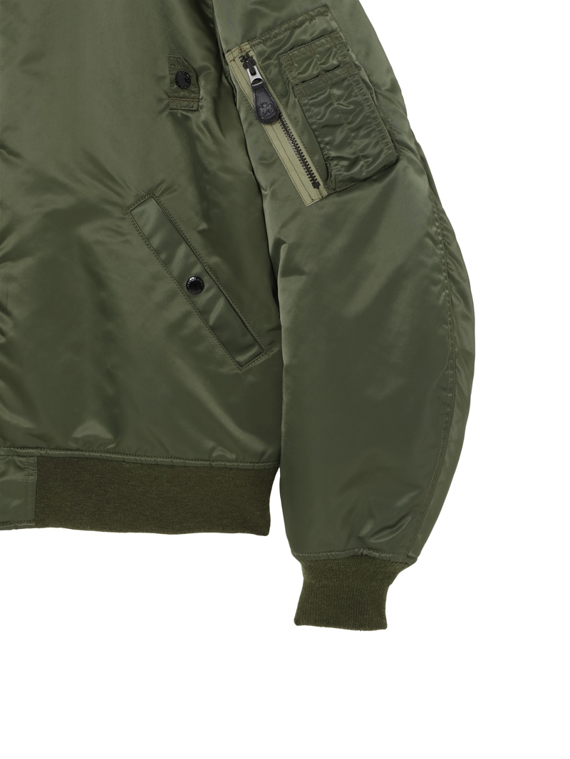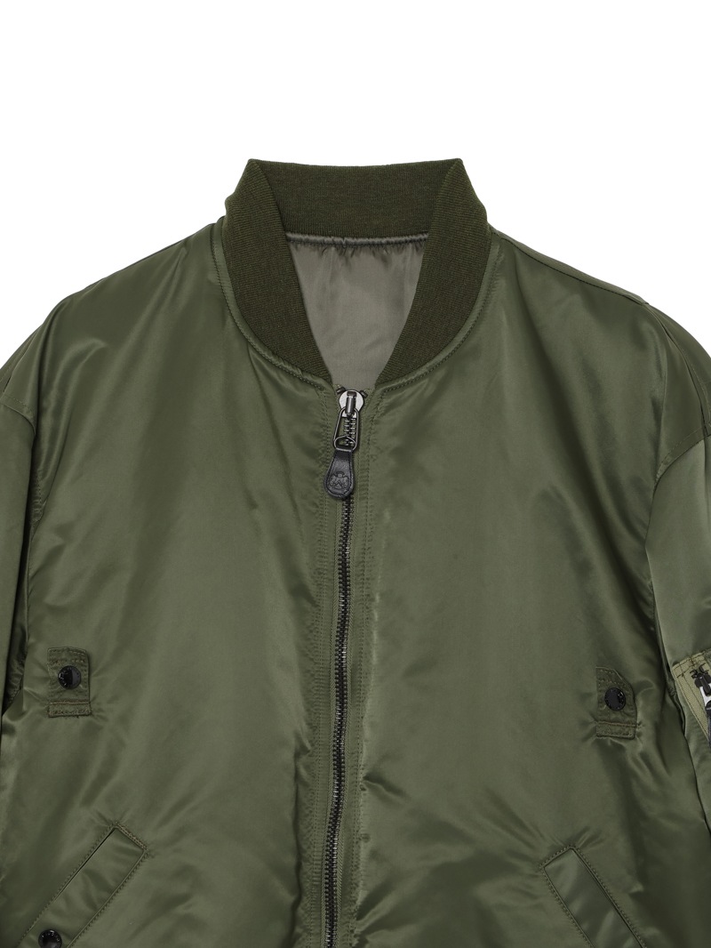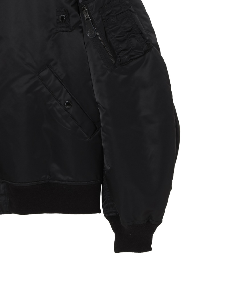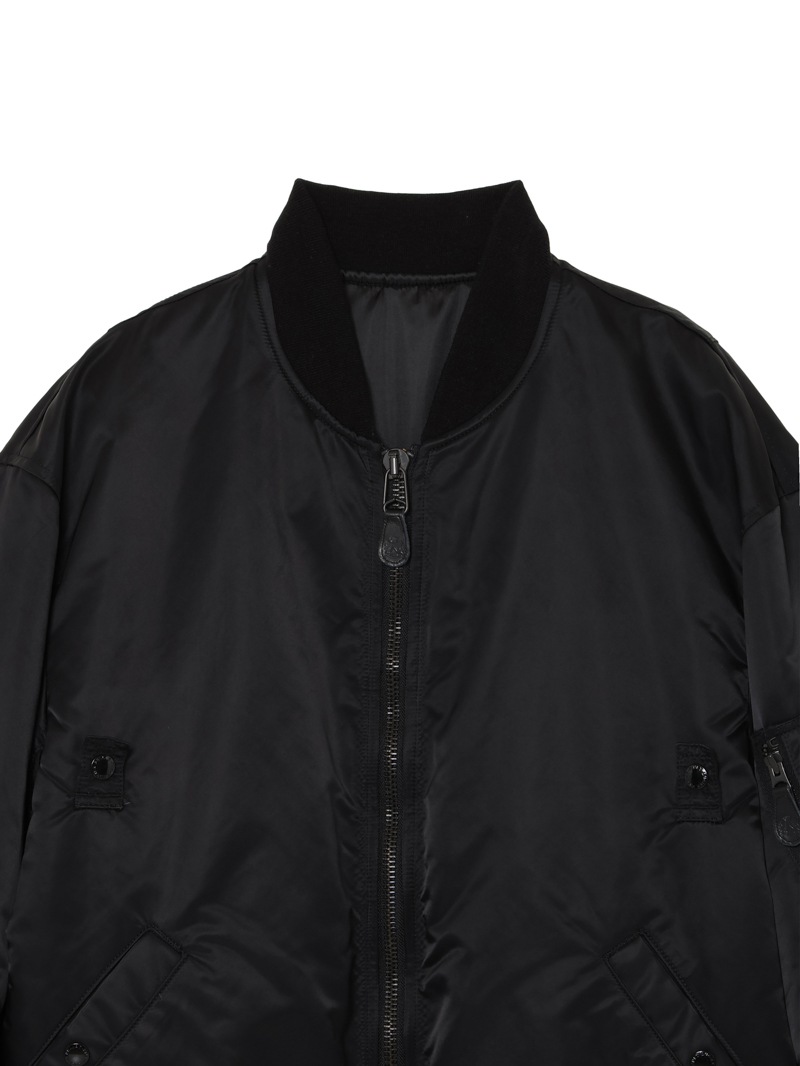 50年代前半にUS MILITARYで採用されたMA-1Wをベースにしたブルゾン。高機能中綿の”シンサレート”を使用し、表地には撥水加工を施したナイロンを使用した高性能なアイテム。ヴィンテージアイテムをベースとしながらも、シルエットは現代風にモディファイし、かつ背中にはアイコニックなモチーフを刺繍で配置したアイテム。