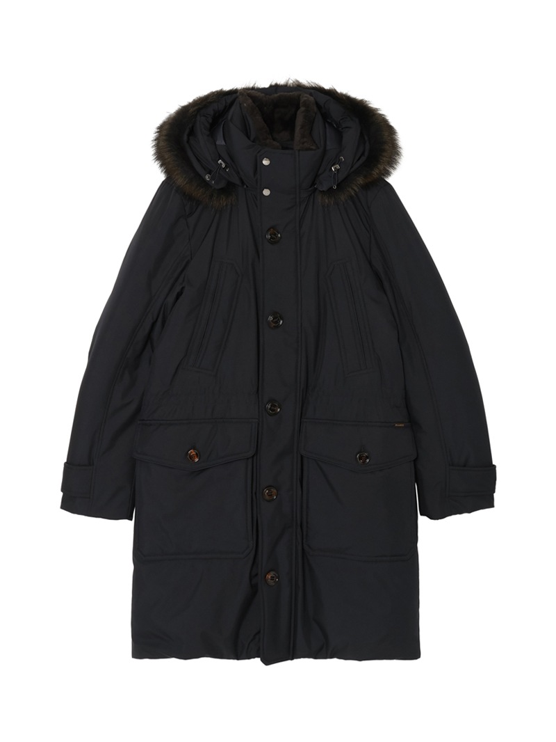 防水効果を備えたAcquaライン(耐水レベル2)のグースダウンコート。上質なテクニカルギャバジン生地にメンブレン加工を施し、通気性・耐水性を高めています。断熱性にも優れ、優美な外見と機能性を最大限追求した人気モデルです。