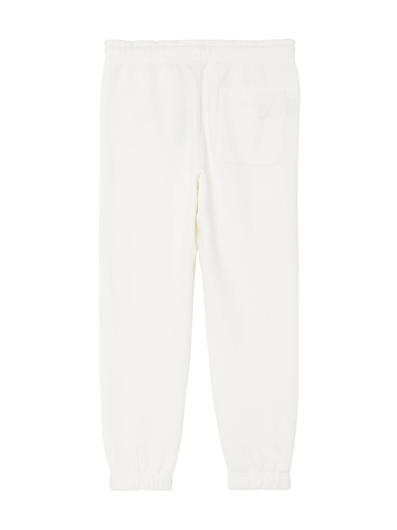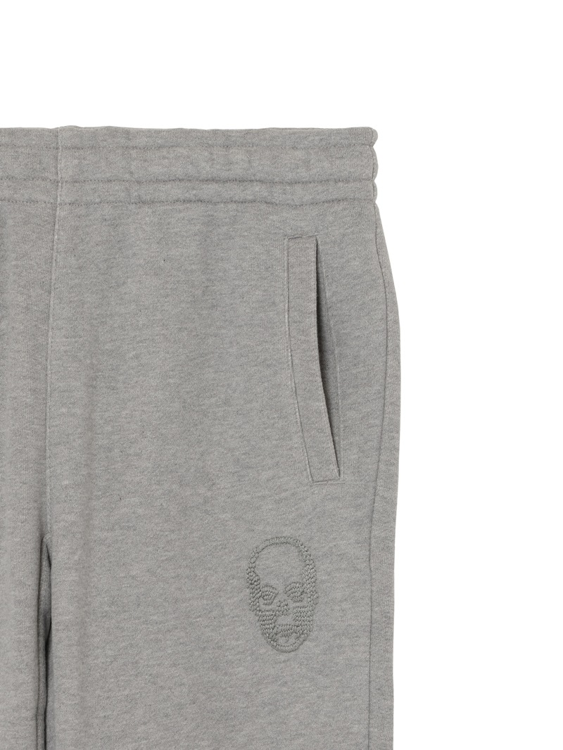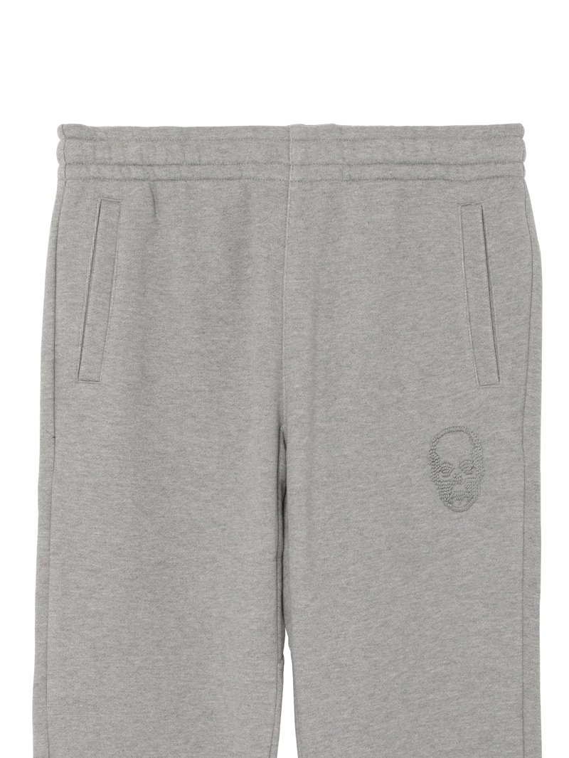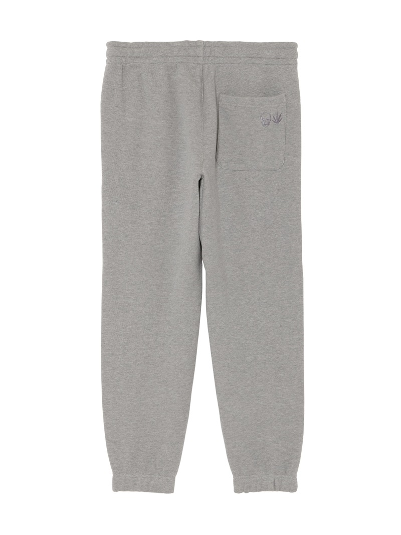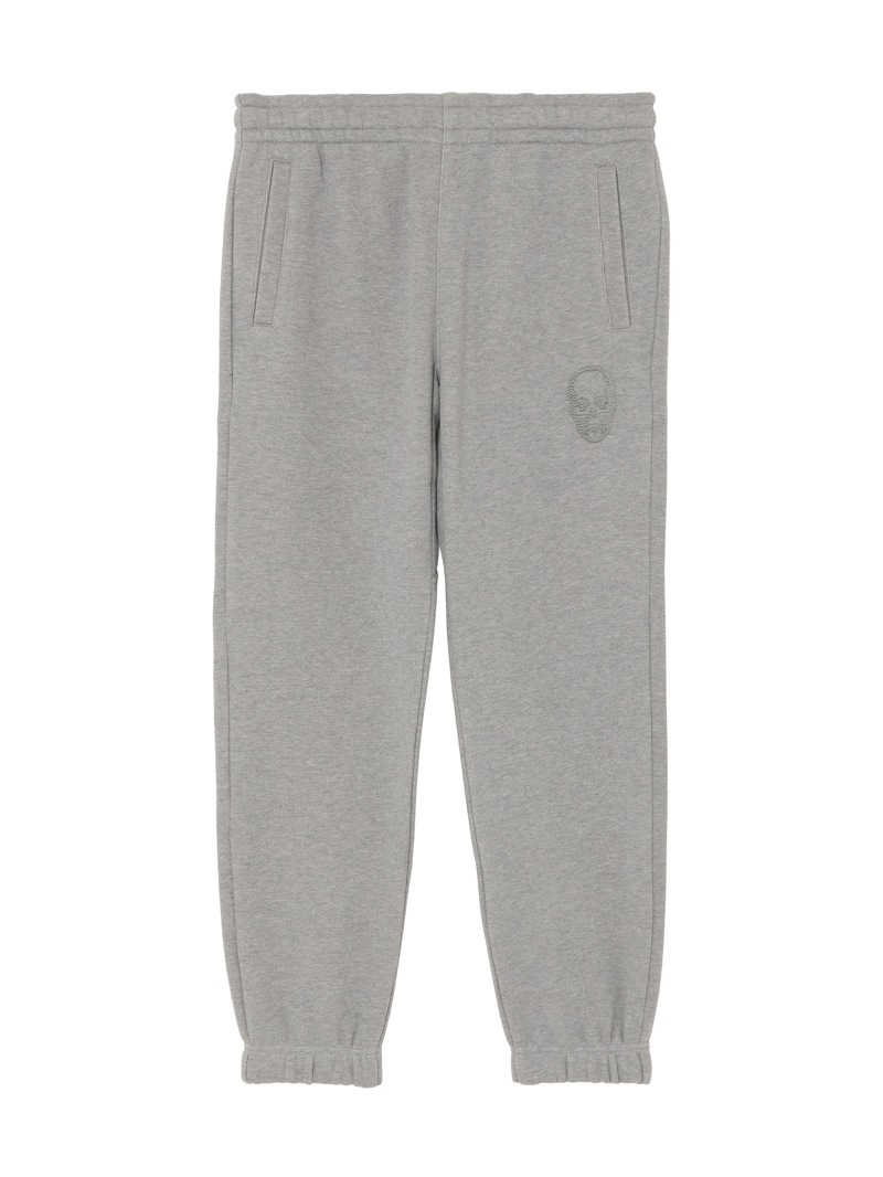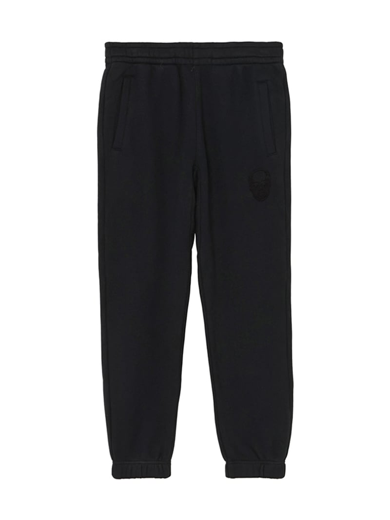 LPF PARISのスウェットパンツ。独特の弾力と、比較的しっかりした目の詰まった素材感が特徴的。左ポケット部分はスカル・モチーフ、後ろポケット部分はスカル&リーフをそれぞれ刺繍で配置。着心地にこだわった上質な素材感。ホワイトとブラック、グレーの3色展開。