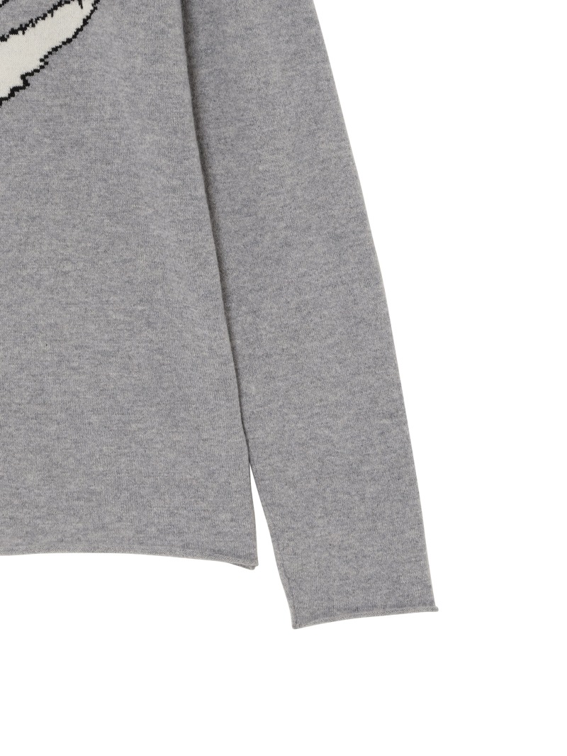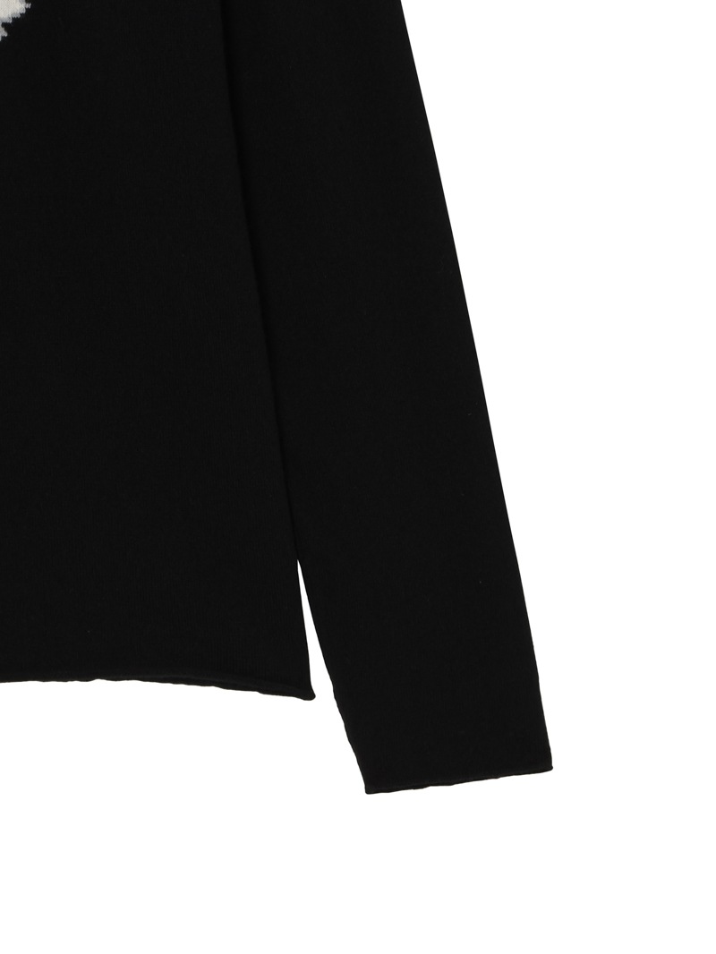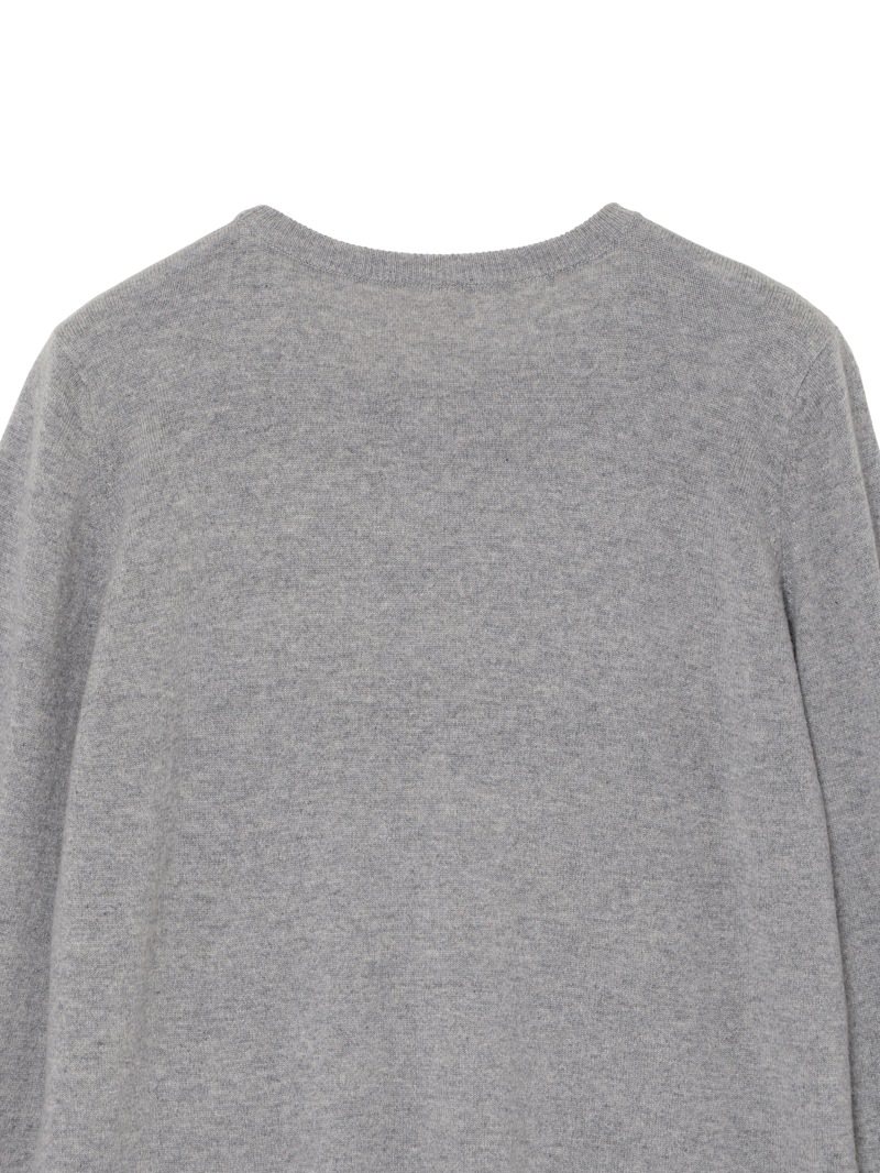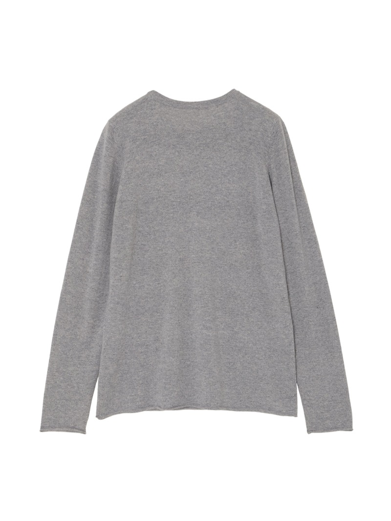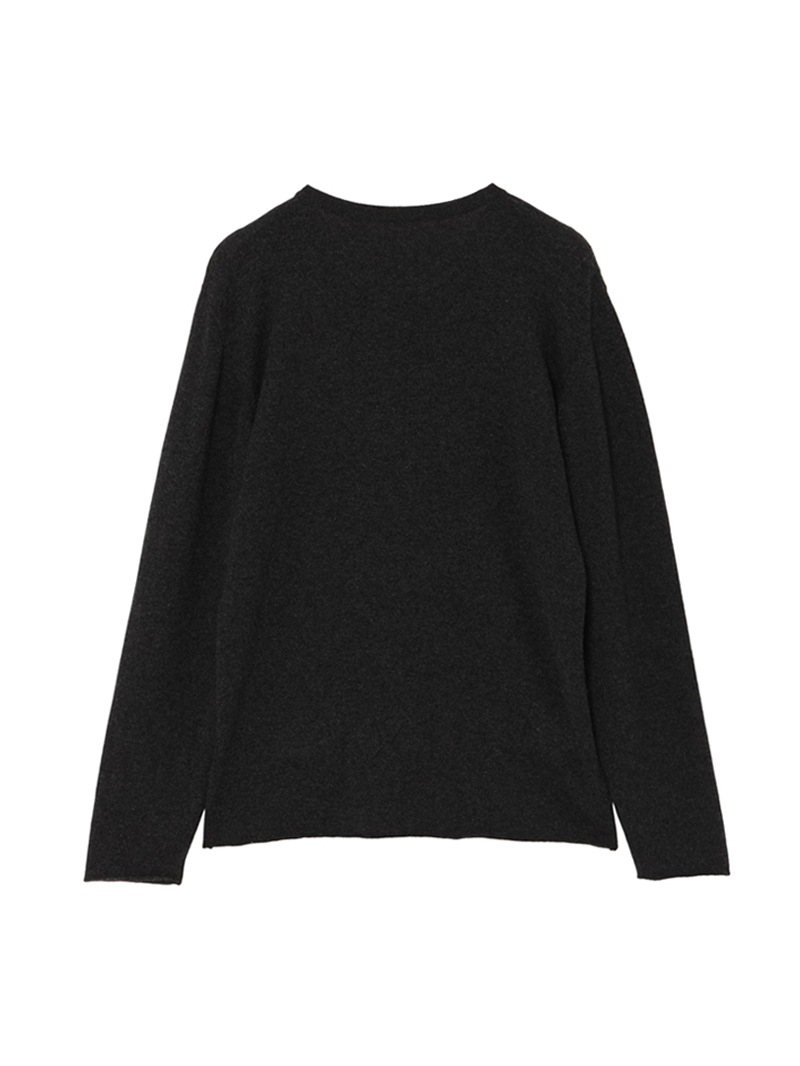 最高級カシミヤを使用したプレーンなミドルゲージセーター。フロントにリーフのインターシャをデザイン。すべてハンドインターシャにより成形されたアイテム。