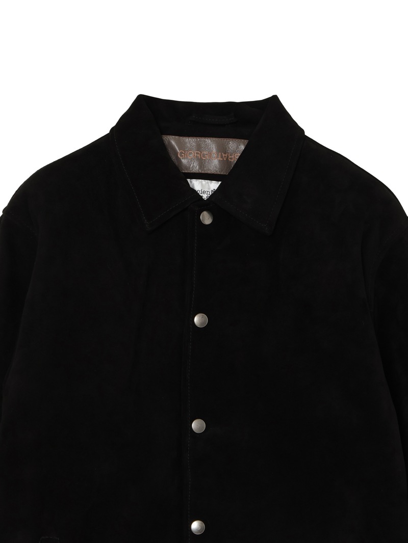 イタリアの最高峰レザーブランドGIORGIO BRATO(ジョルジオ ブラート)とコラボレーションしたスウェード素材のジャケット。 GIORGIO BRATOのスウェードは、上質な牛革のしっかりとした風合いが特徴で高い保温性を両立。スッキリとした好シルエットでカジュアルに羽織ることができるジャケット。クリスタルで表現されたミニ・スカルを左襟裏面に配置。