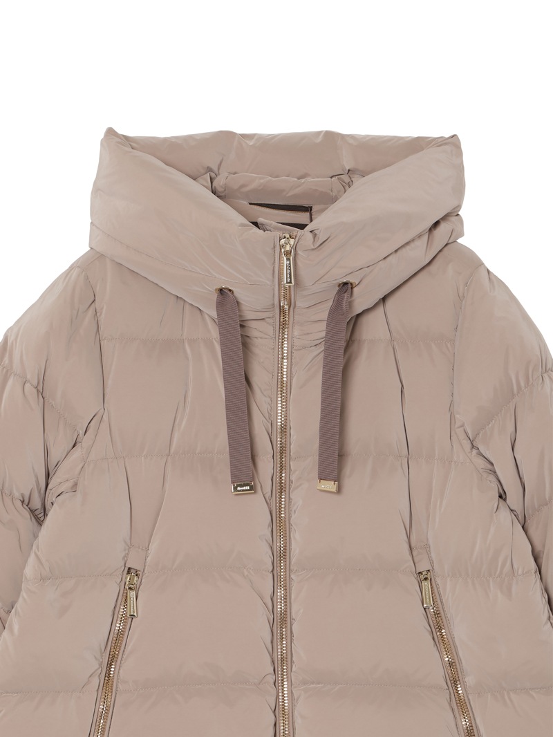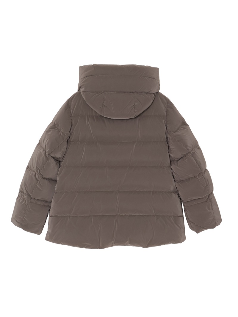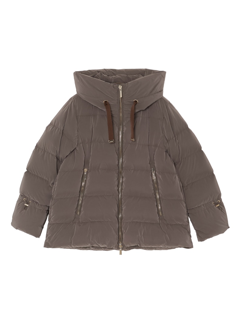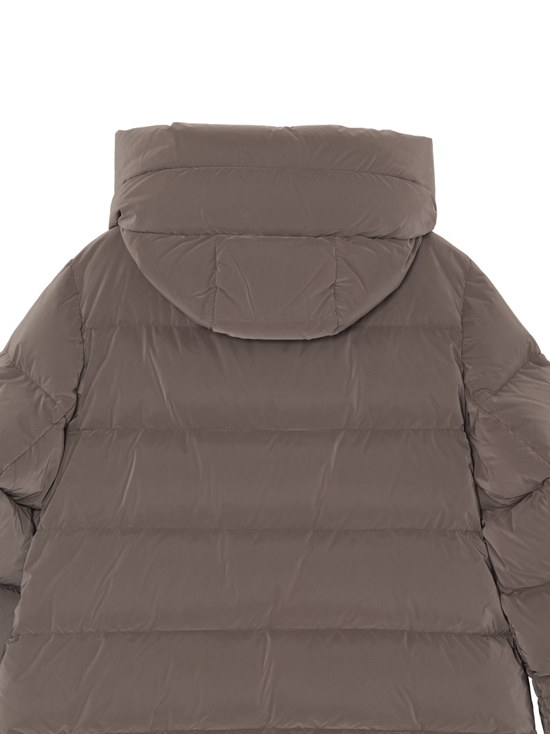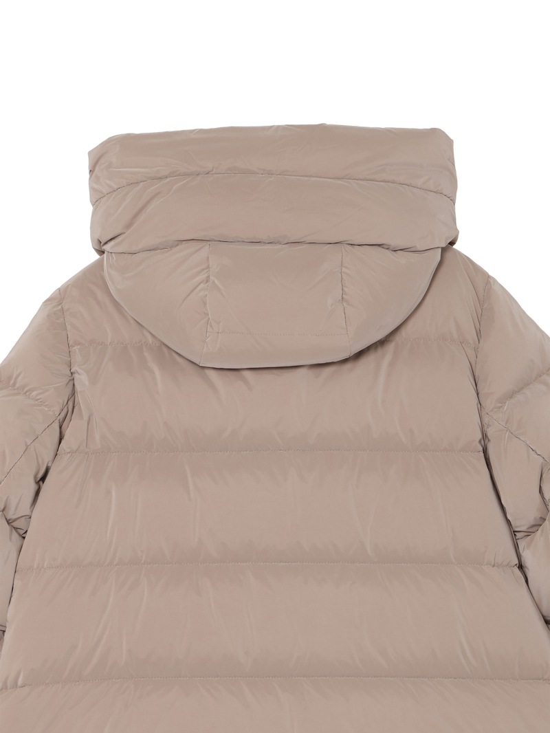Aラインのパファージャケット。太めのキルティングと包み込むような襟が特徴。微起毛感のあるテクニカルマイクロファイバー素材は、光を反射しフロスト調の光沢を放つシルキーでマットな質感。羽毛が抜けにくいようダウンプルーフ性を高めています。
