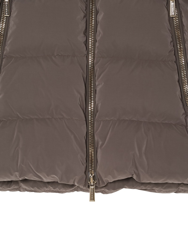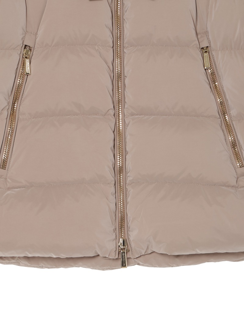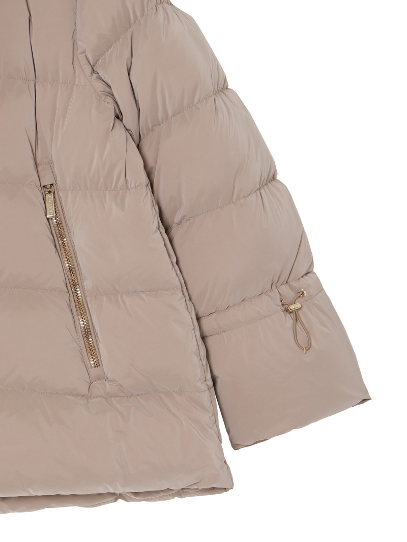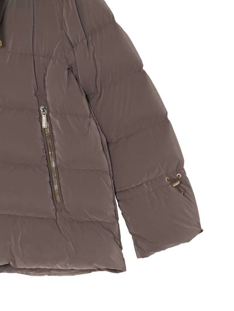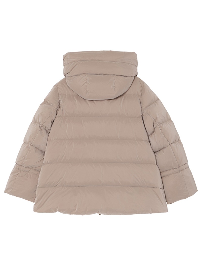 Aラインのパファージャケット。太めのキルティングと包み込むような襟が特徴。微起毛感のあるテクニカルマイクロファイバー素材は、光を反射しフロスト調の光沢を放つシルキーでマットな質感。羽毛が抜けにくいようダウンプルーフ性を高めています。
