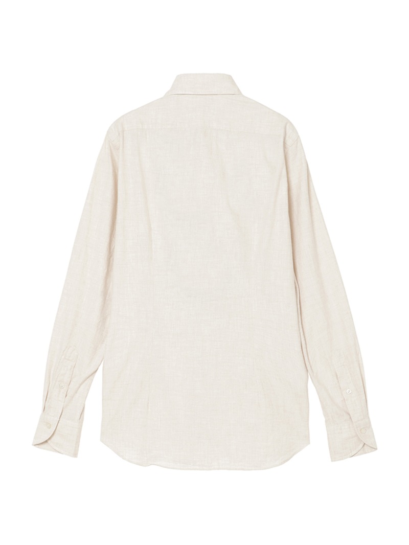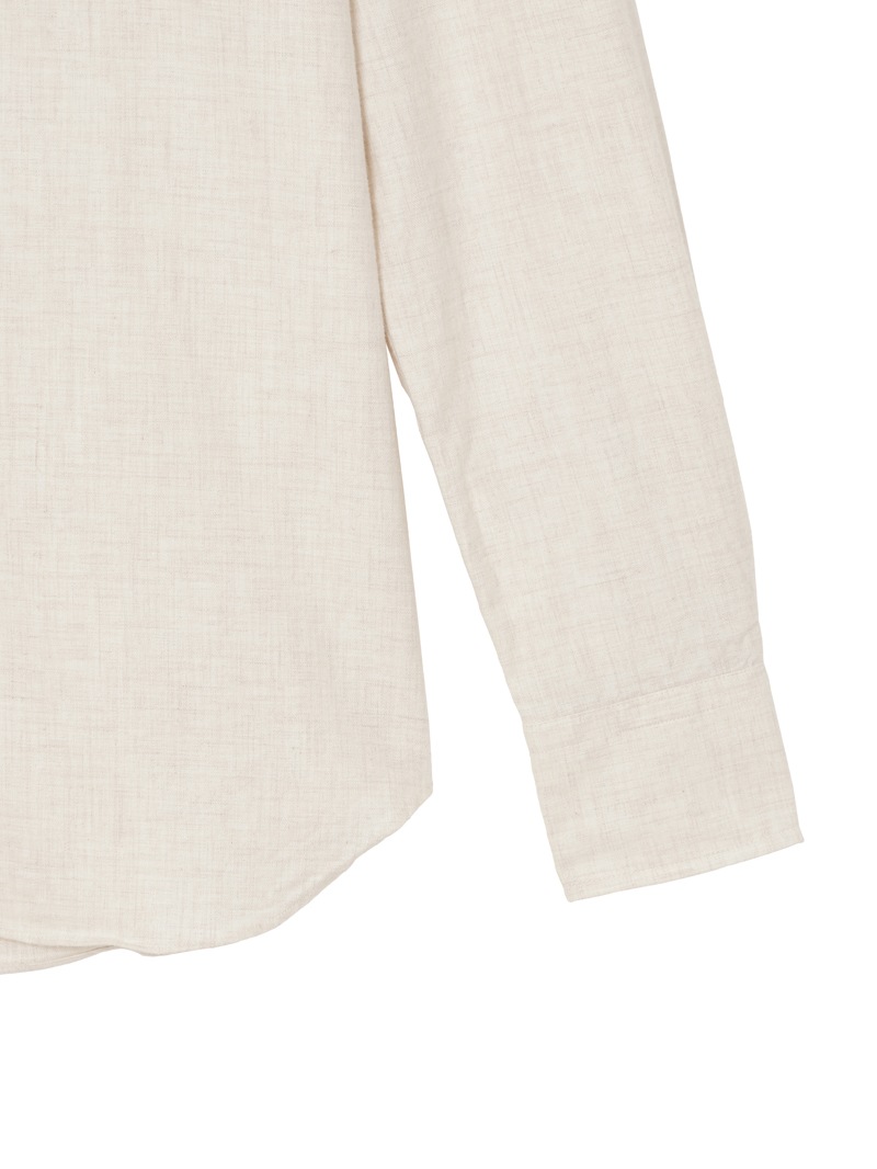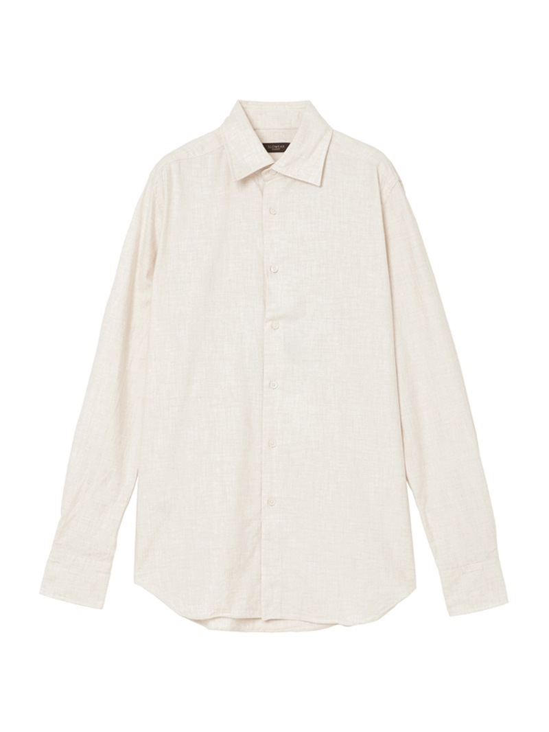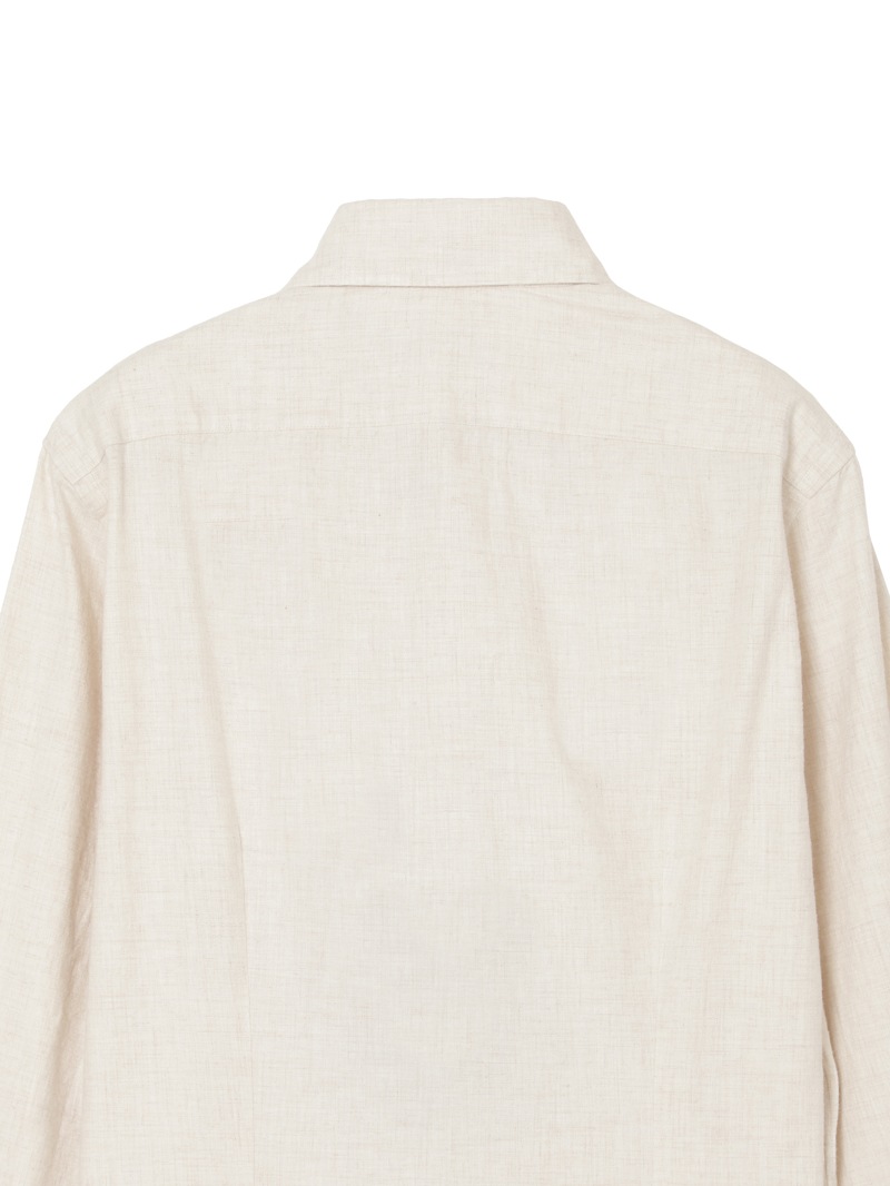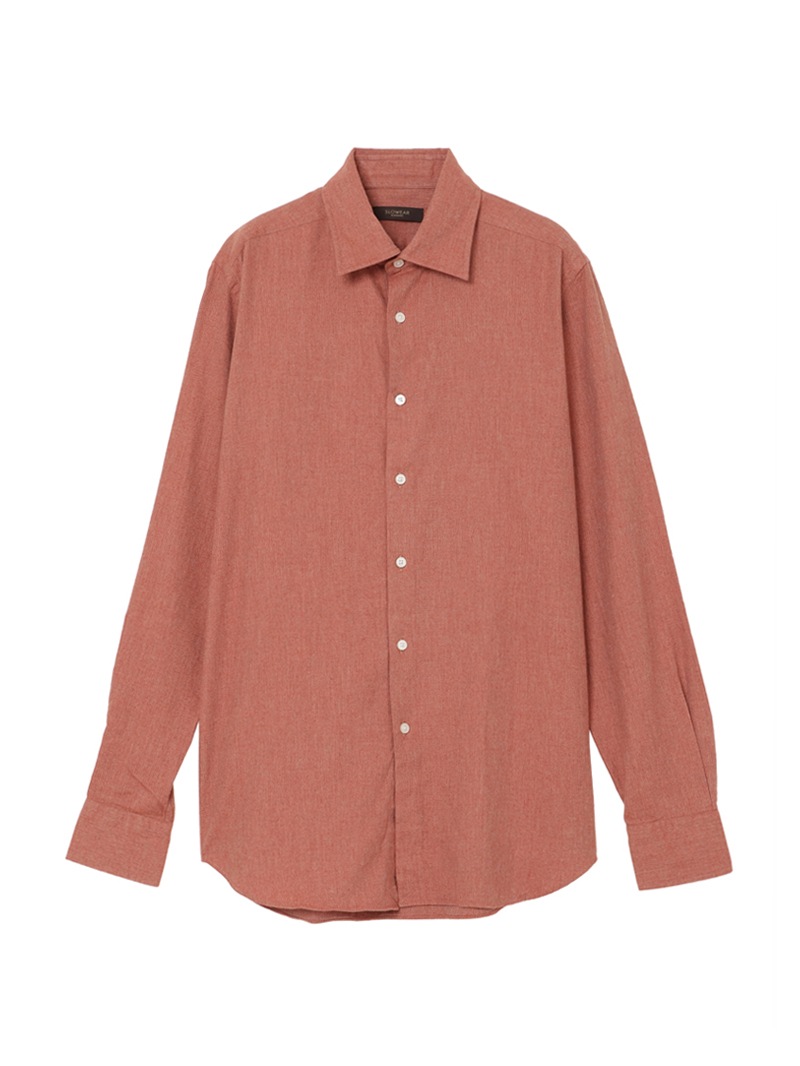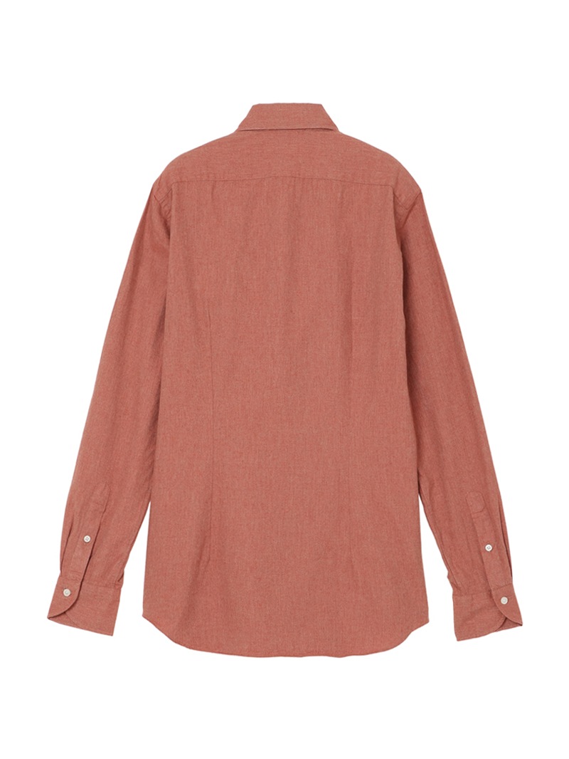 SLOWEAR GLANSHIRTの中でも長年定番として展開しているレギュラーフィットモデル“FABRIZIO”。レギュラーフィットでありながらもダブつきの少ない背ダーツ、ややロングポイントのセミワイドの襟型に、パンツインできる長めの着丈設定。メランジのコットンフランネル生地は暖かく柔らかな肌触りが特徴。