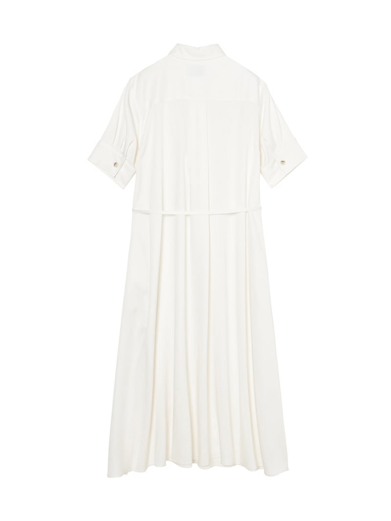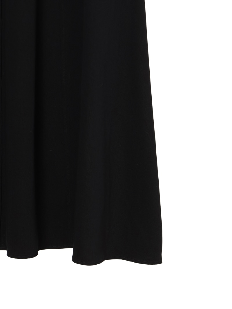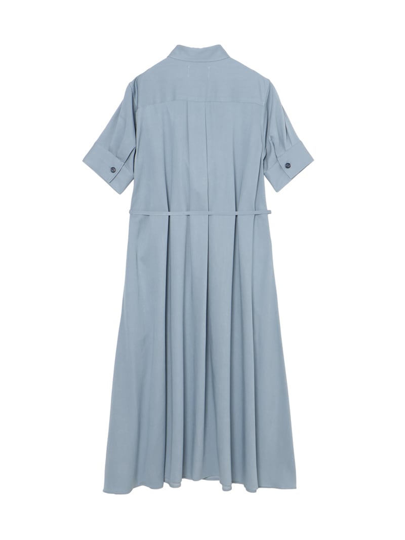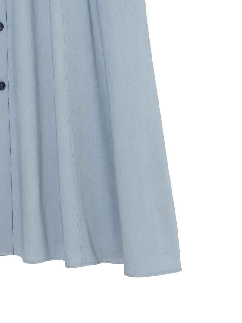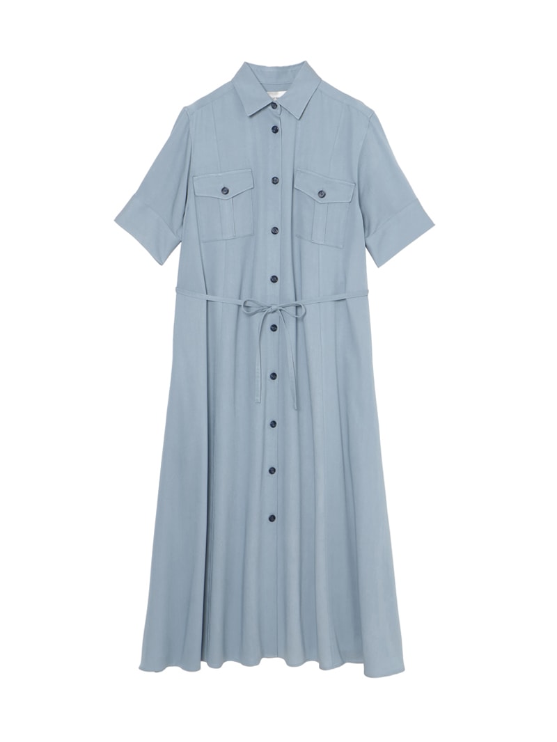 スラブ糸によるナチュラルな表情と上品な光沢、美しいドレープ性を持ったノンフェイドのデニム素材を使用したロングワンピース。