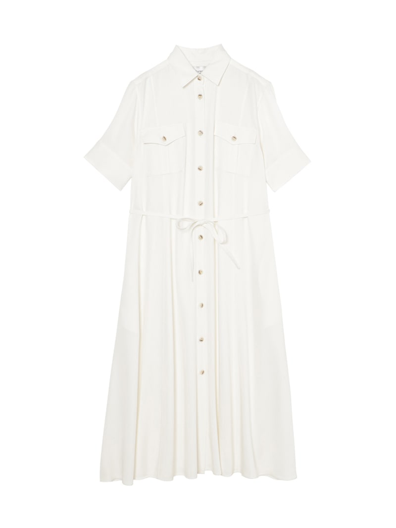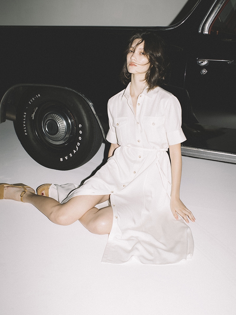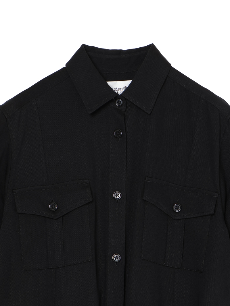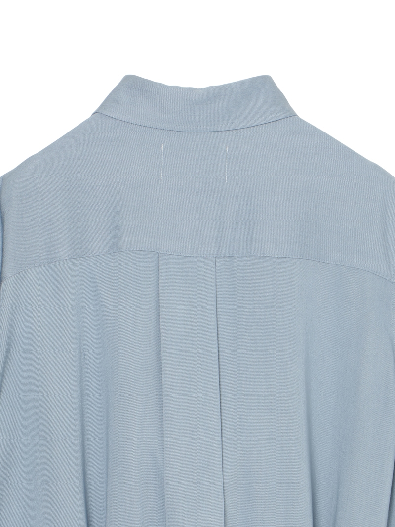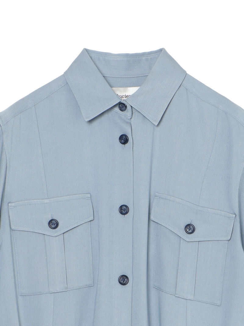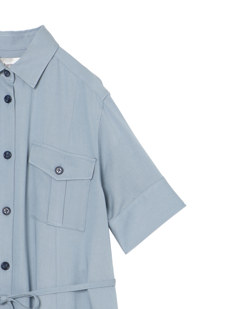 スラブ糸によるナチュラルな表情と上品な光沢、美しいドレープ性を持ったノンフェイドのデニム素材を使用したロングワンピース。