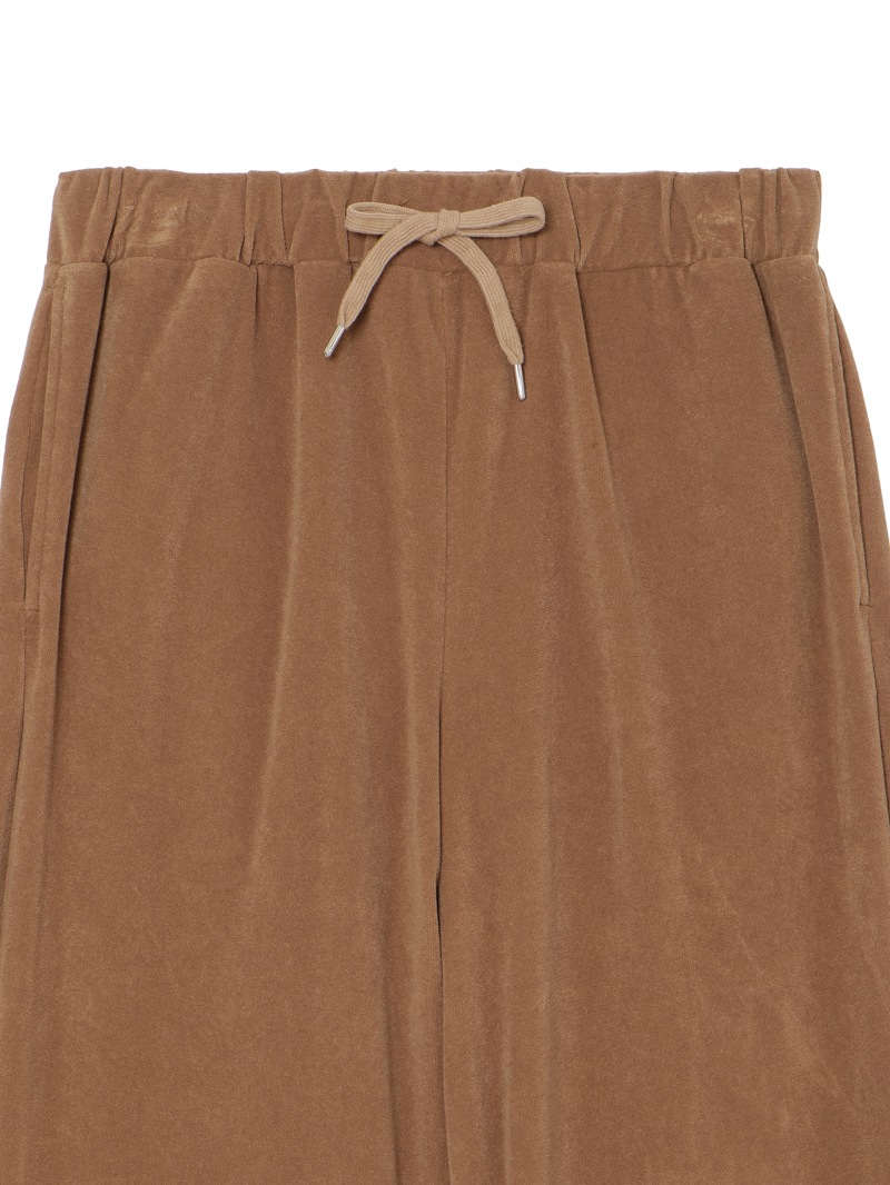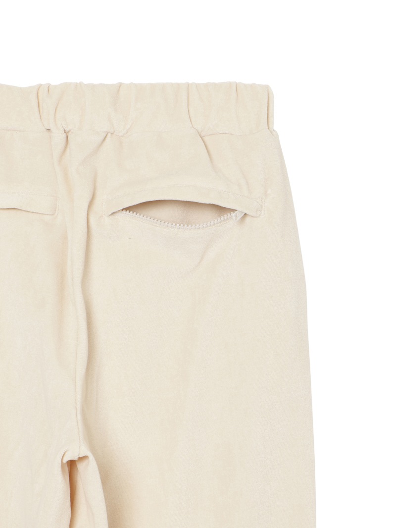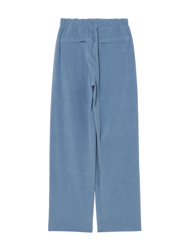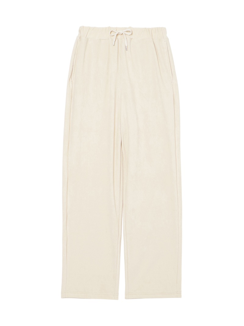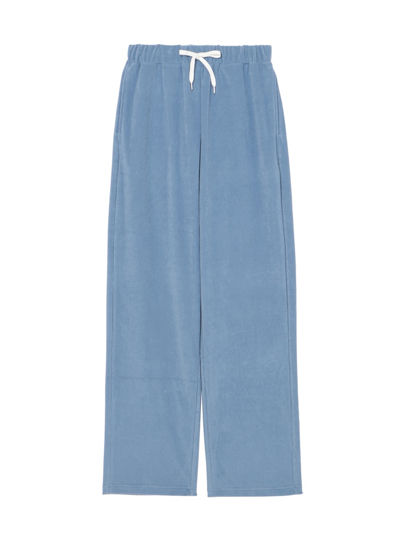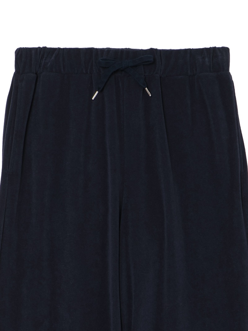 きめ細かなパイル素材を採用したパンツ。ゆとりのある身幅でリラックスムードを演出。。極上の肌触りを実現した特徴的な素材。