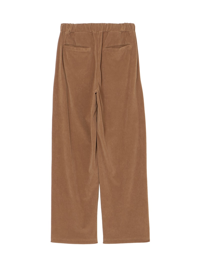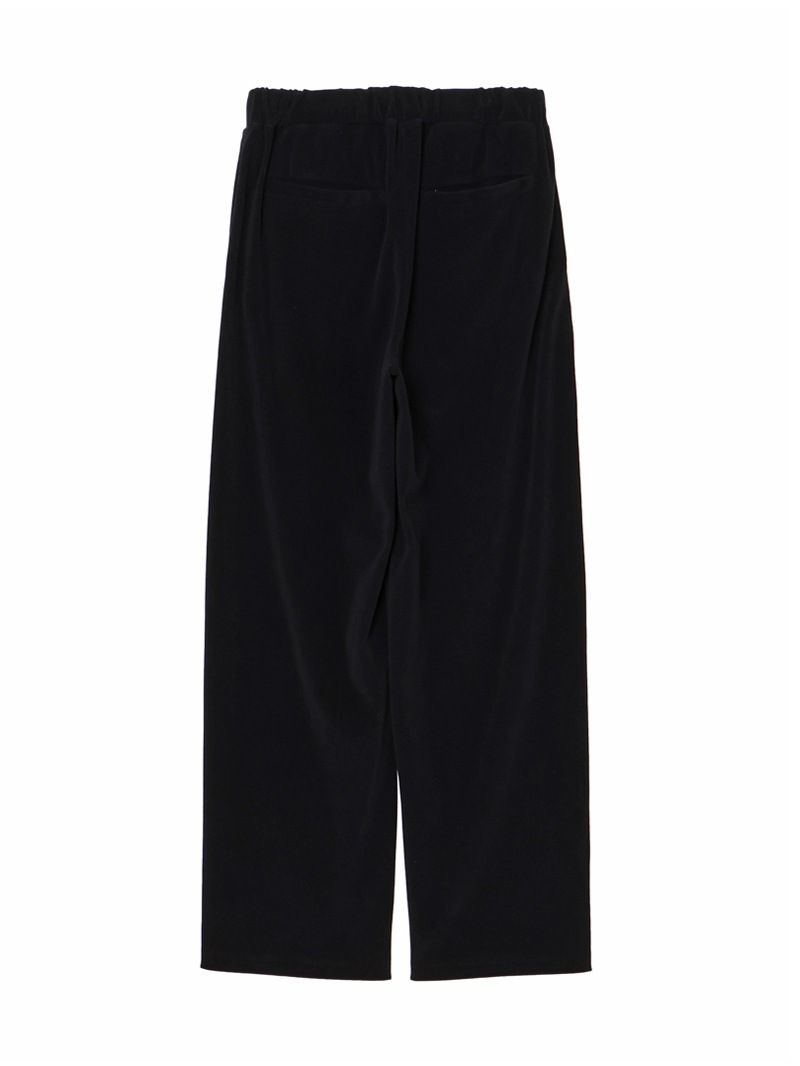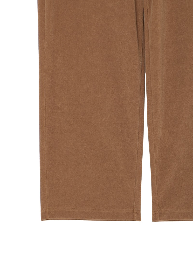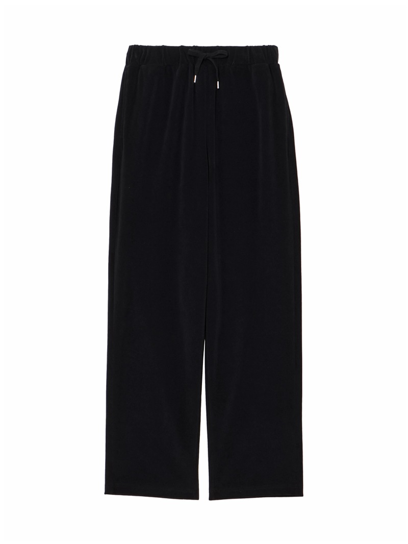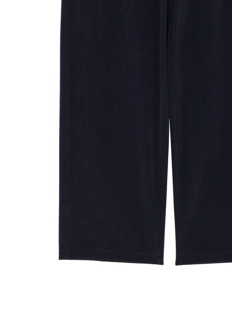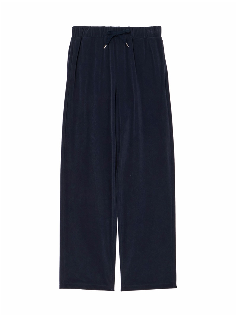 きめ細かなパイル素材を採用したパンツ。ゆとりのある身幅でリラックスムードを演出。。極上の肌触りを実現した特徴的な素材。