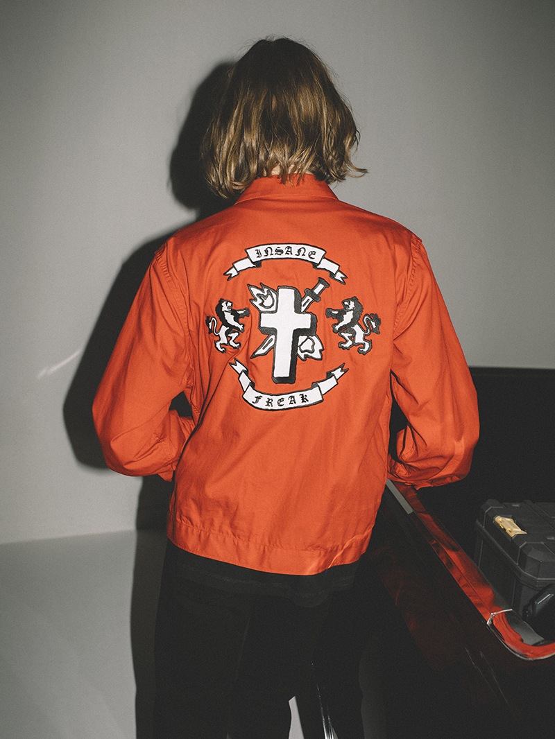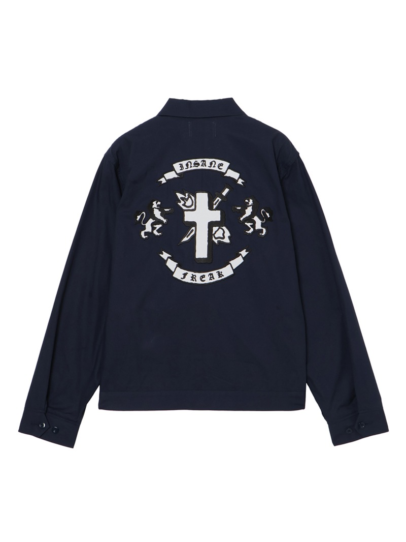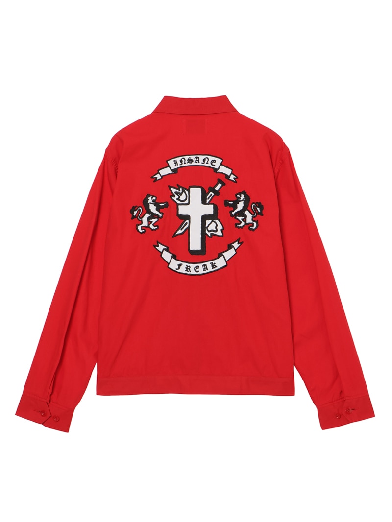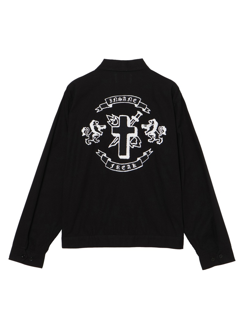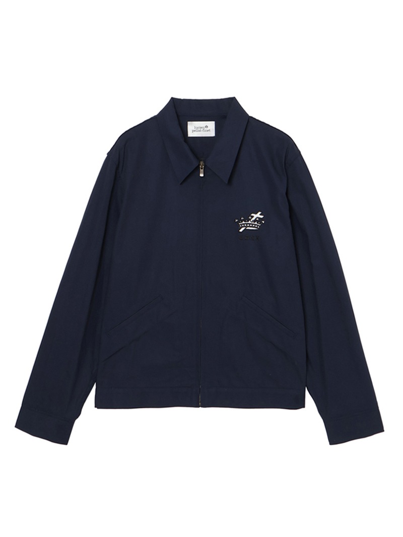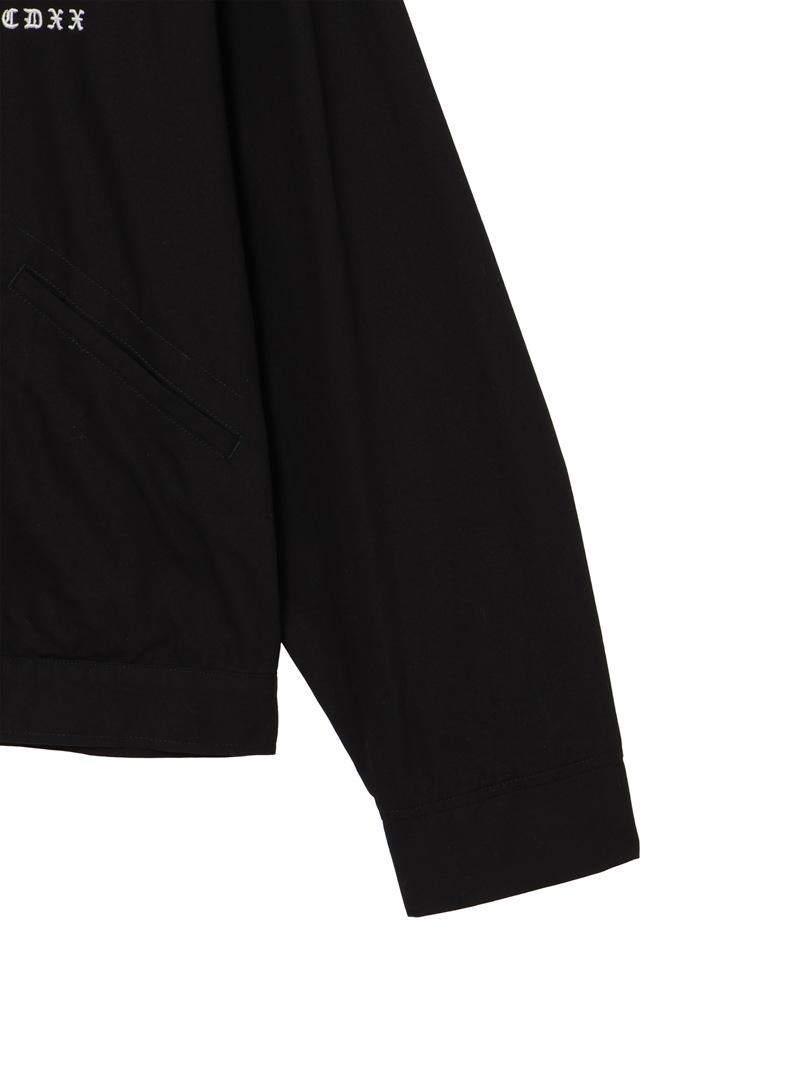 薄手で軽量・耐久性に優れたポプリン生地を使用。柔らかな肌触りでとろみのある質感が特徴。春夏に適した快適な素材感。左胸と背中にデザインされた刺繍に用いたグラフィックはJamie Story氏によるもの。