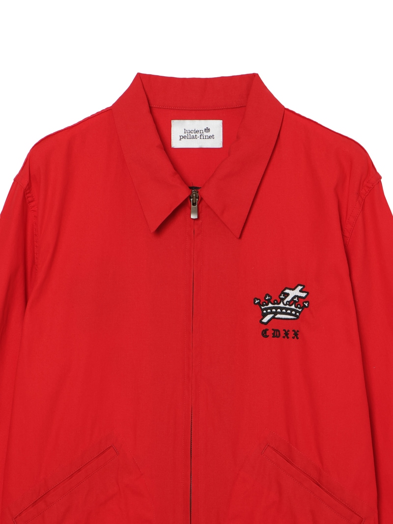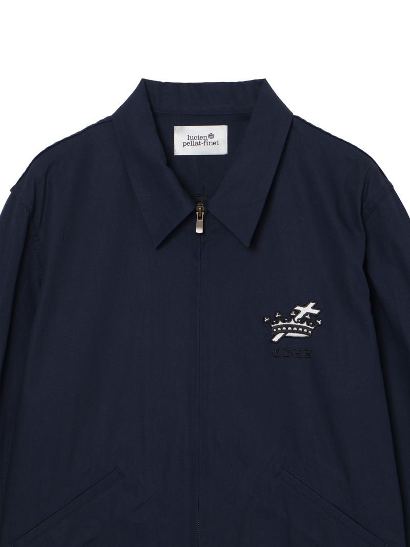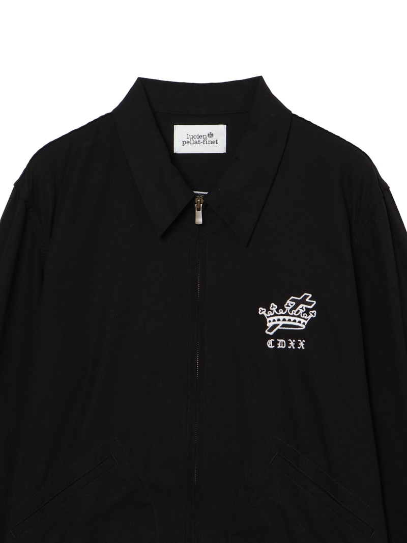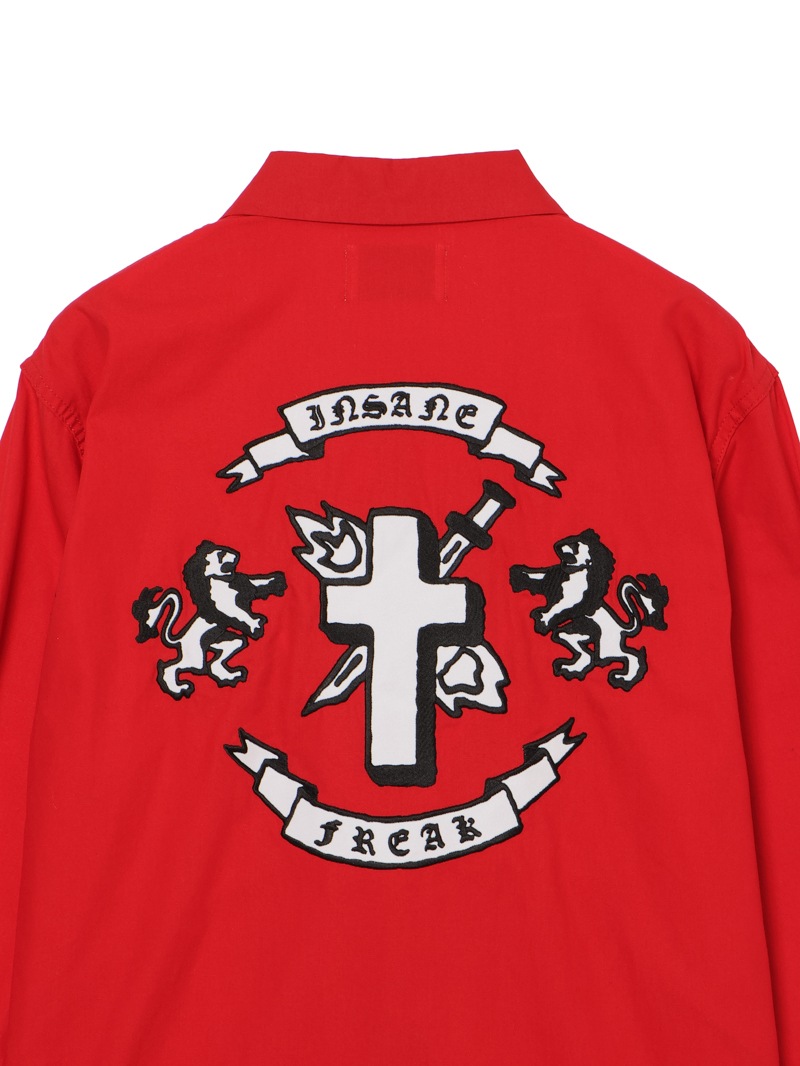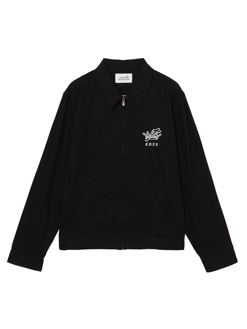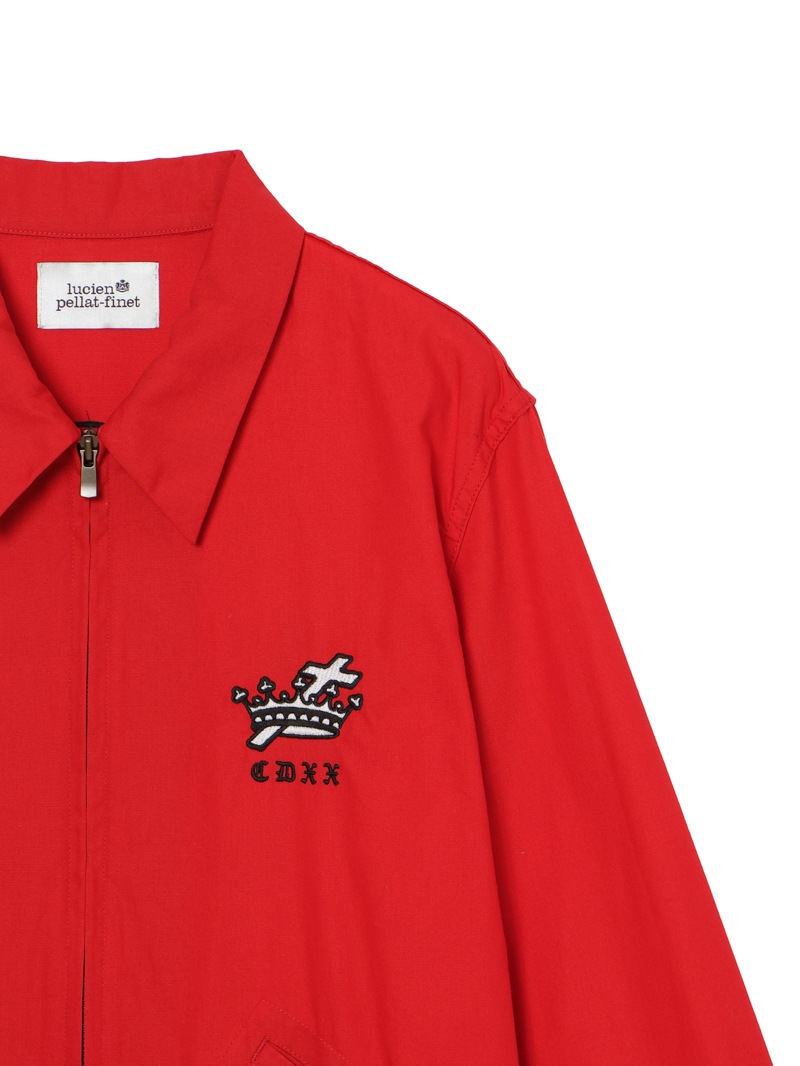 薄手で軽量・耐久性に優れたポプリン生地を使用。柔らかな肌触りでとろみのある質感が特徴。春夏に適した快適な素材感。左胸と背中にデザインされた刺繍に用いたグラフィックはJamie Story氏によるもの。