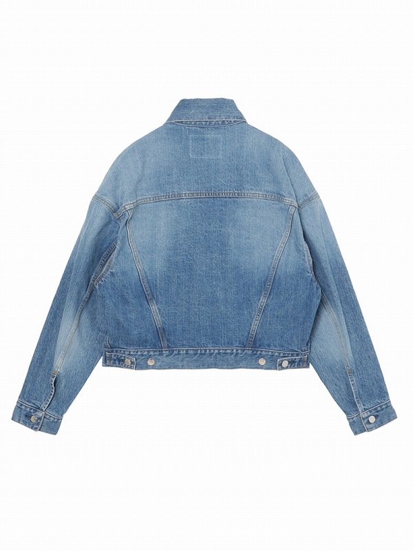 13.75オンスのセルヴィッチデニムを使用。通常のデニムはヨコ糸に白糸を打ち込みますが、この生地はベージュの糸使用することで、ヴィンテージ感を表現しています。程よい洗い加工を入れることでヴィンテージ感を楽しみながら、着込んでいくと経年変化も楽しめます。