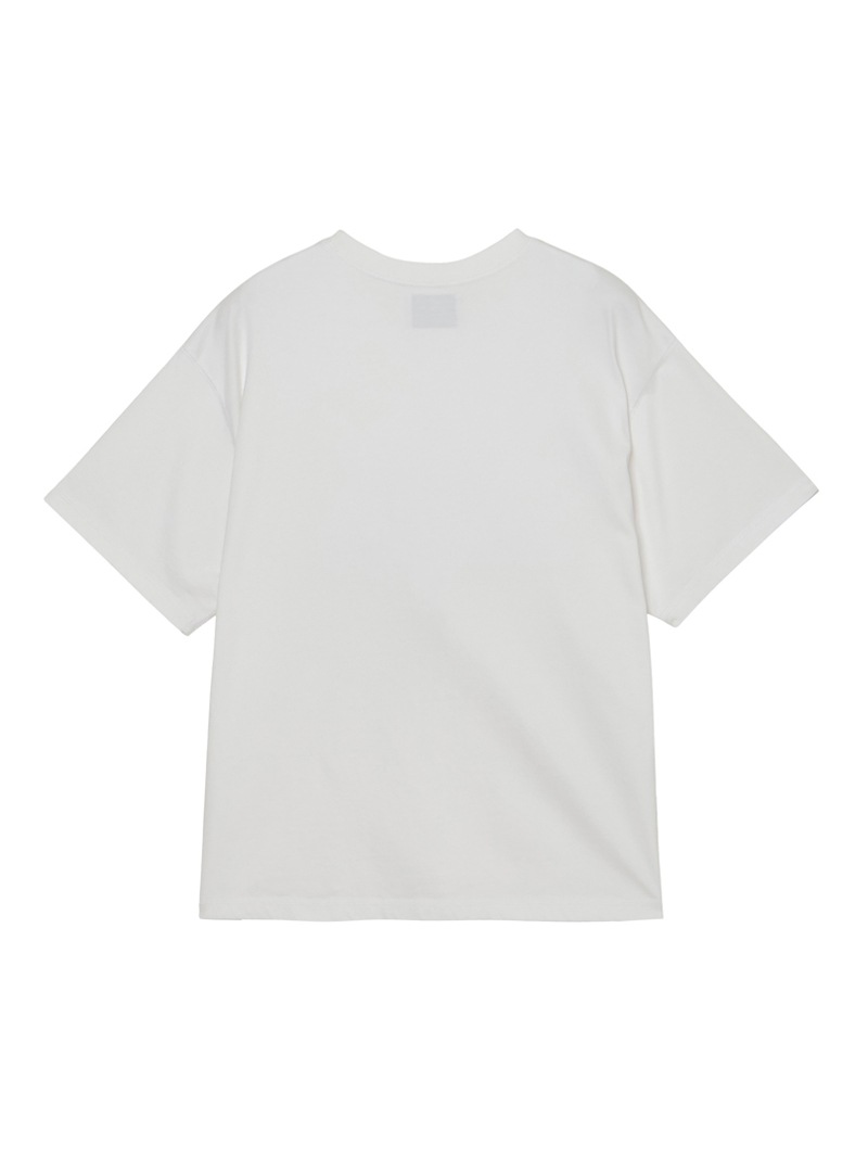 デザイナー宮下貴裕氏とのコラボレーションアイテム。40/3天竺を使用。40/3天竺は、なめらかな肌触りと適度な厚み、優れた耐久性を持つ、高品質な天竺ニット生地。通常の単糸や双糸を使った天竺よりも、上品な光沢があり、型崩れしにくいという利点がある。