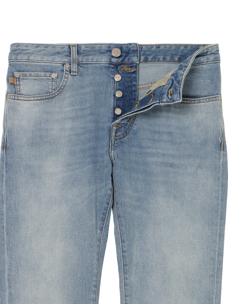ブランドの中で1、2を争う人気モデル“BARD”の12オンス ストレッチデニム。時代に左右されないスリムフィット、ミディアムライズのシルエットはブランドを代表する一本。ヴィンテージを彷彿とさせる色落ちも、JACOB COHENらしい上品さとリッチな雰囲気を残した仕上がり。バックパッチは筆記体ロゴをエンボス加工した、ダーティーな雰囲気のブラウンスエード。