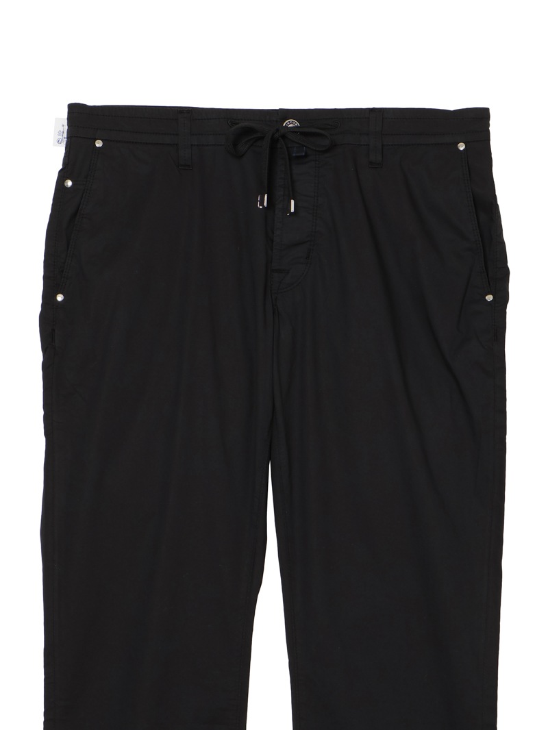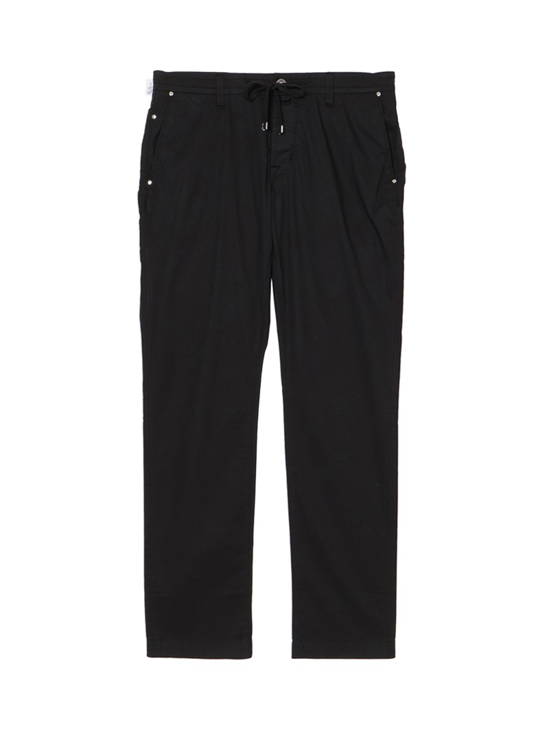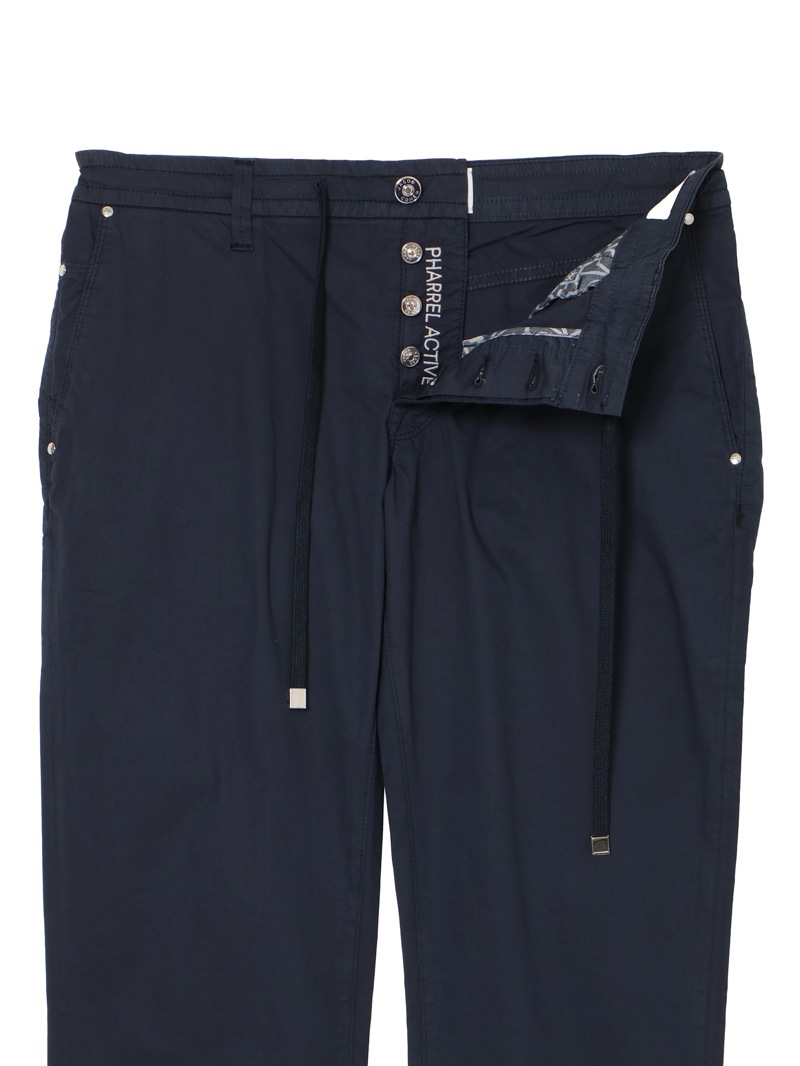 リラックスキャロットフィットの“PHARREL ACTIVE”。腰、もも回りにゆとりを持たせ、裾にかけて絞ったテーパードシルエット。軽やかでストレッチ性のあるコットンポプリンを使用し、ウエストはドローストリングで調整可能。バックパッチは型押しのロゴとフレームを配した、トーンオントーンのヌバックレザーラベル。