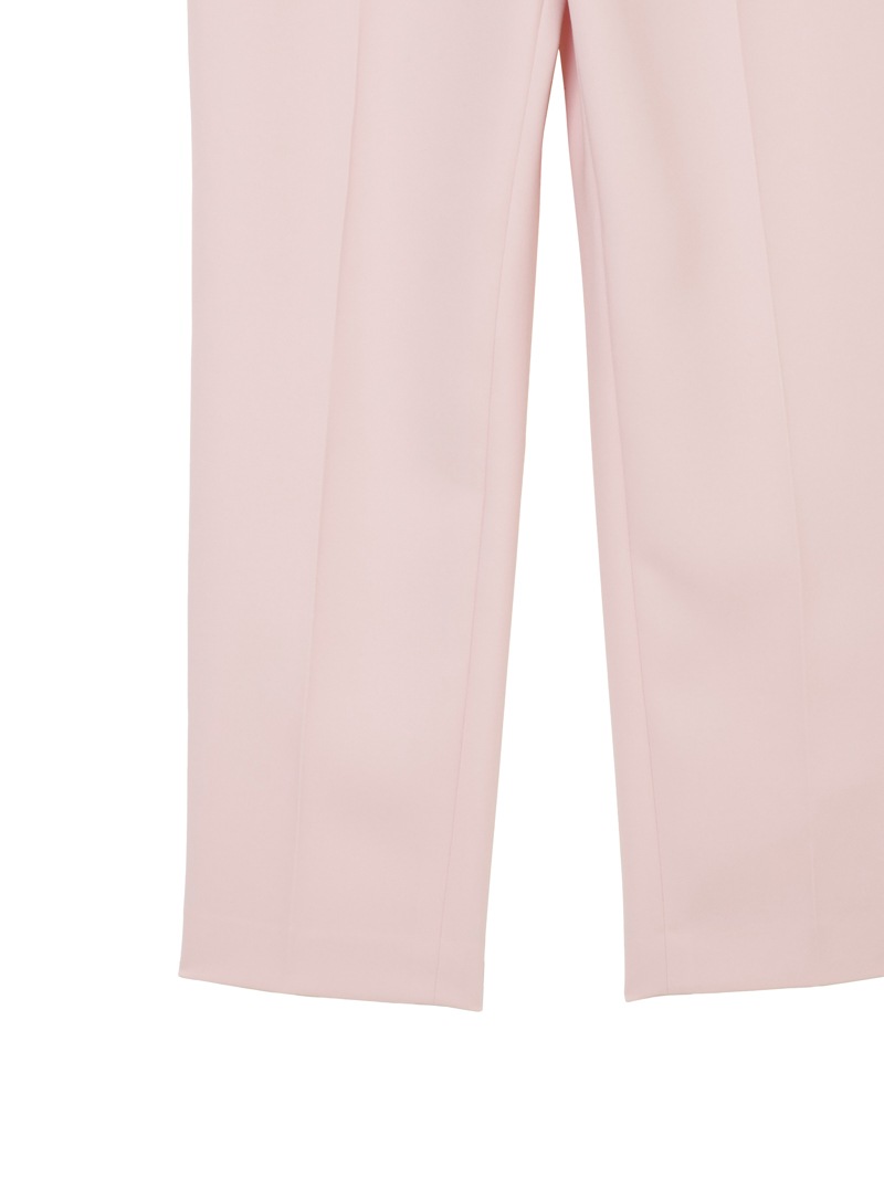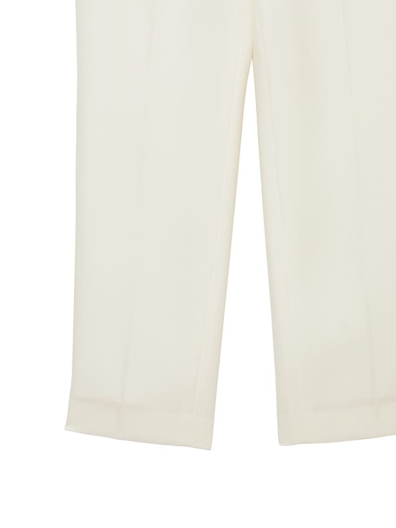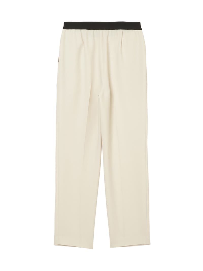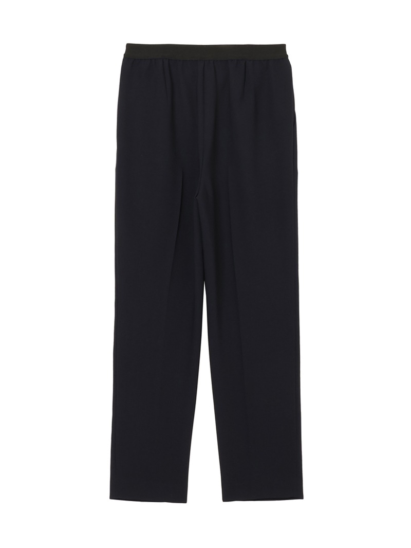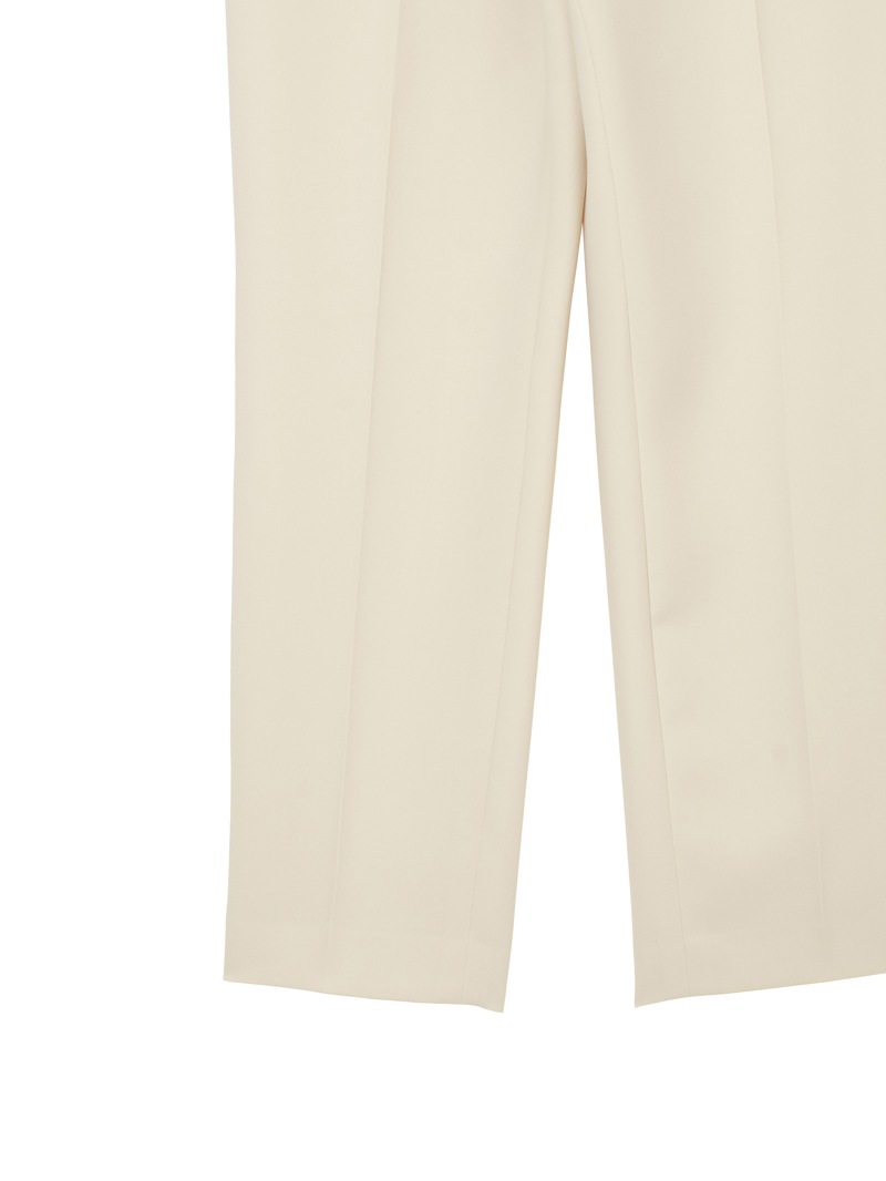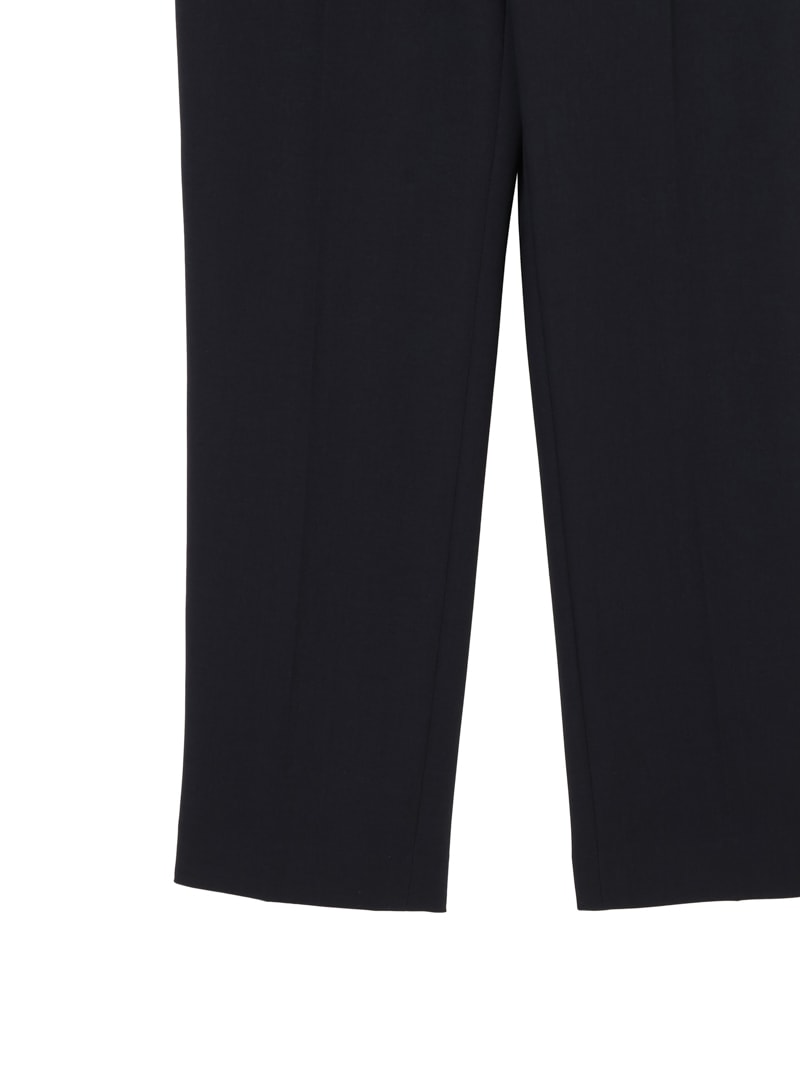 仕立て映えする上質な生地感と、美しいシルエットが特徴のミラ・ショーン定番パンツ。梳毛のような風合いを表現したポリエステル糸を使い、二枚の生地を重ねて織り上げた素材を使用しています。